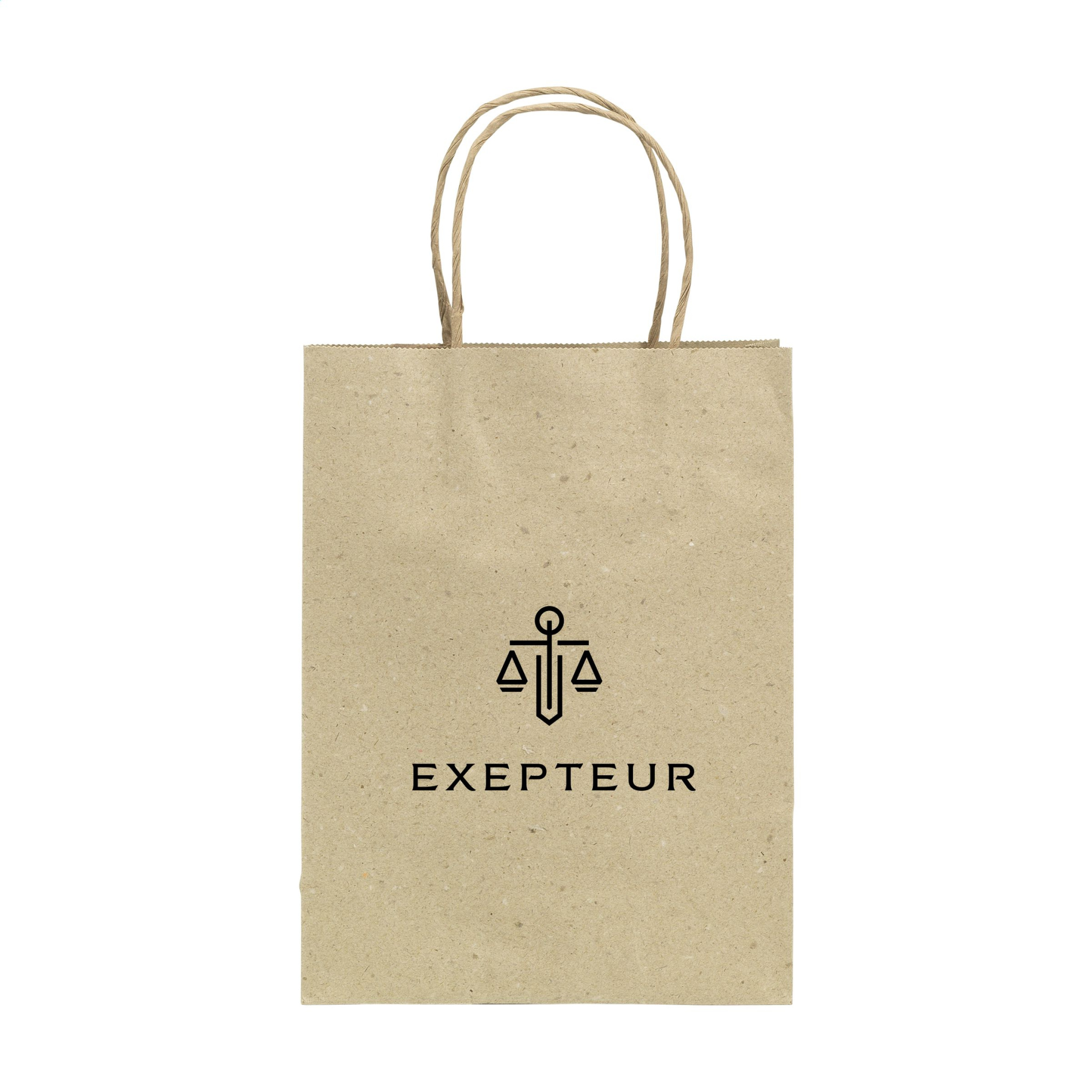WoW! Прочный подарочный пакет из ЭКО-бумаги (размер M) из переработанной травяной бумаги (120 г/м²). Благодаря использованию натуральных материалов неровности бумаги можно увидеть и/или почувствовать. Это придает изделию красивый естественный вид. Пакет имеет две короткие петли для переноски бумаги, сложенное дно и боковую складку. Для производства этого пакета не вырубаются деревья.