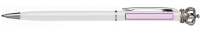 Тонкая шариковая ручка из металла с синим стержнем. Корона и маленький стеклянный бриллиант делают эту ручку уникальной. Мы гравируем ваш логотип справа от зажима.
