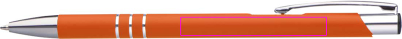 Тонкая металлическая шариковая ручка с резиновым покрытием и синим пишущим пластиковым стержнем. Ваш логотип будет выгравирован под зажимом.