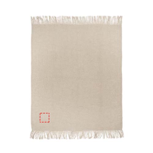Ультрамягкое мохеровое одеяло из вторичного ПЭТ, обернутое лентой из вторичного ПЭТ 190T. Упаковано в полиэтиленовый пакет из переработанного материала. Длина бахромы: 10 см с каждой стороны. Размер ленты: 72 см x 4 см.