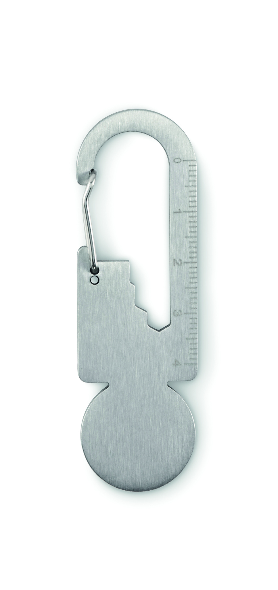 Trolley token with key ring in recycled stainless steel with multi-function tool including bottle opener, ruler and hex driver wrench (M1/M2/M3/M4).