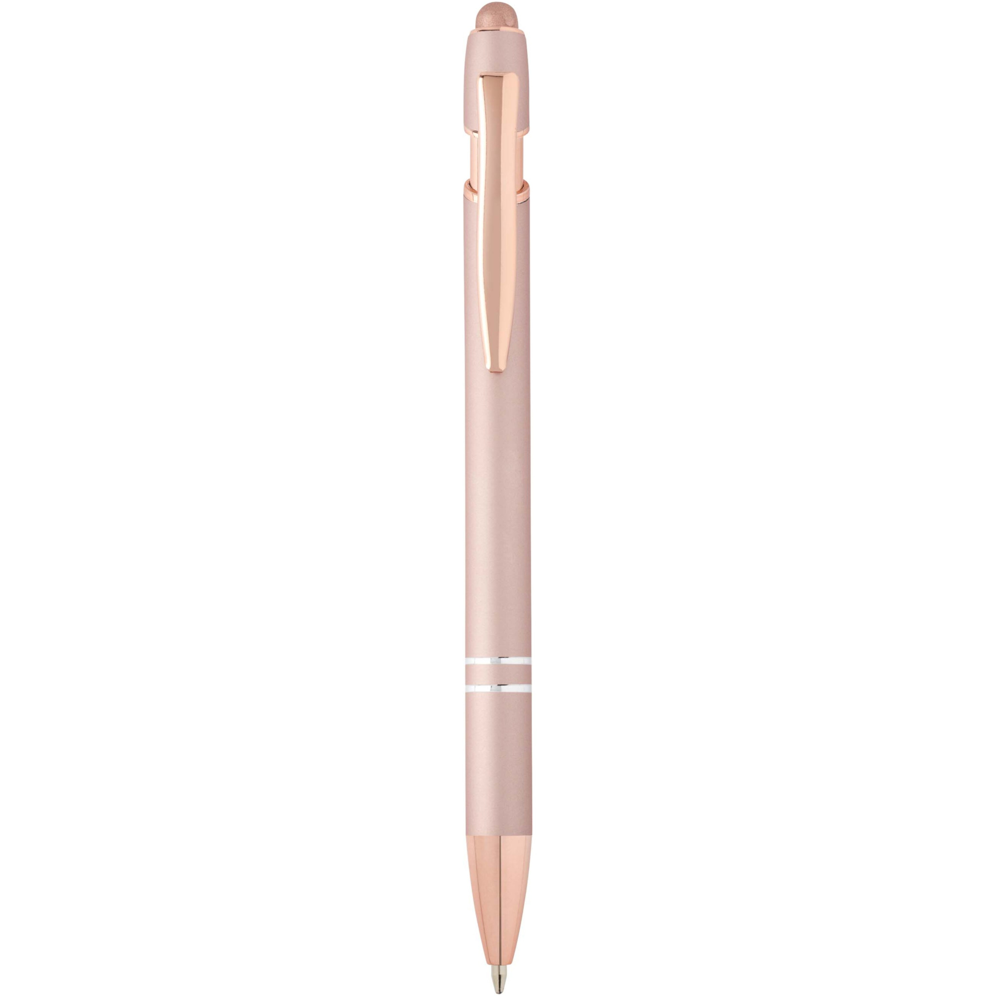 Шариковая ручка Nanna с покрытием из розового золота имеет корпус из переработанного алюминия и сенсорный стилус из силикона. Переработанный алюминий уменьшает количество отходов на свалках и помогает сохранять природные ресурсы для сокращения выбросов парниковых газов. Цвет чернил: черный. Длина непрерывной линии: 800 метров. Размер пера: 1,0 мм.