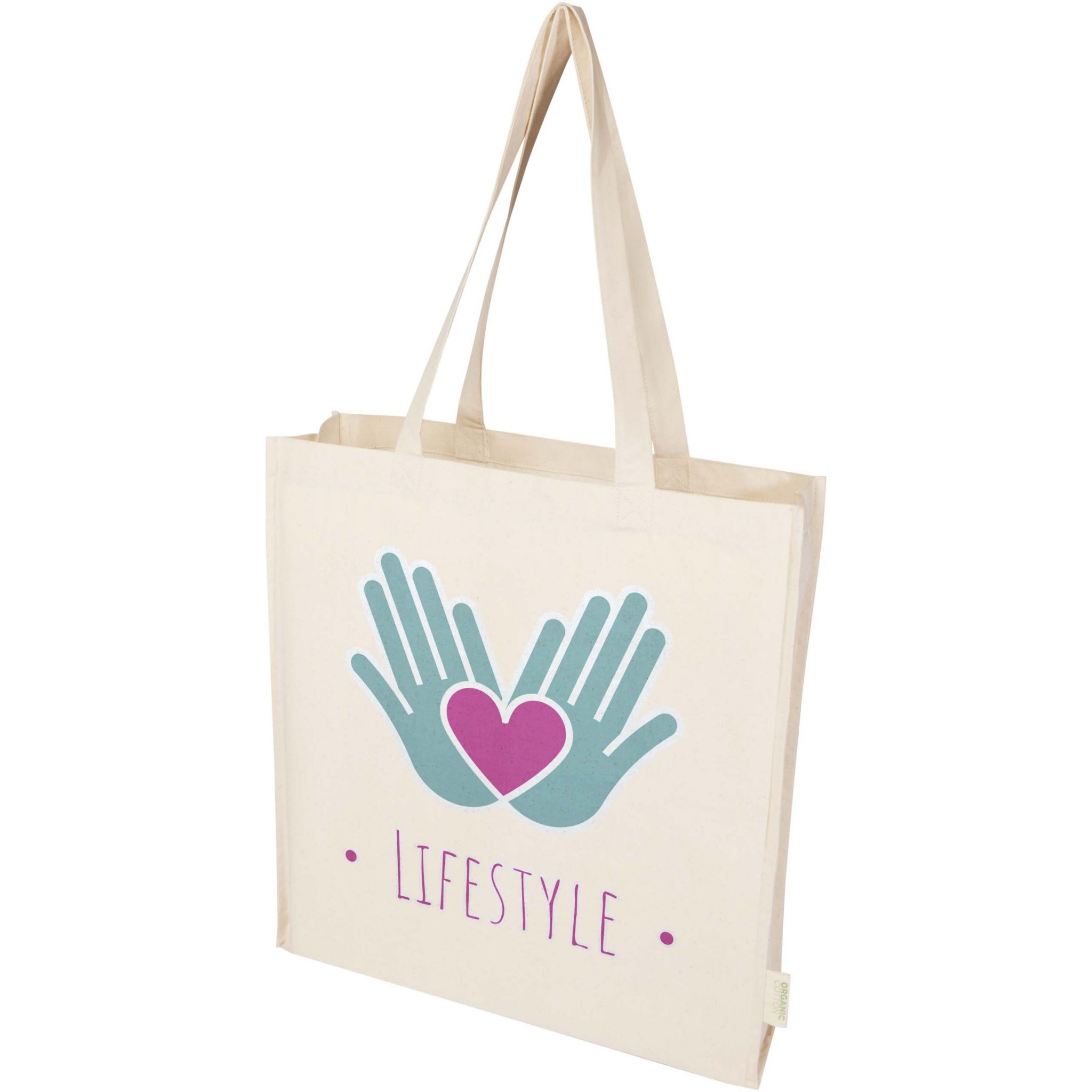 The Orissa 180 g/m² organic tote bag provides extra storage space with its side gussets and wide bottom, and with its long handles it's also comfortable to carry around. The tote bag is made of cotton from India that is also Oeko-Tex certified. Resistance up to 5 kg weight. Capacity: 14 litres.