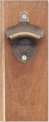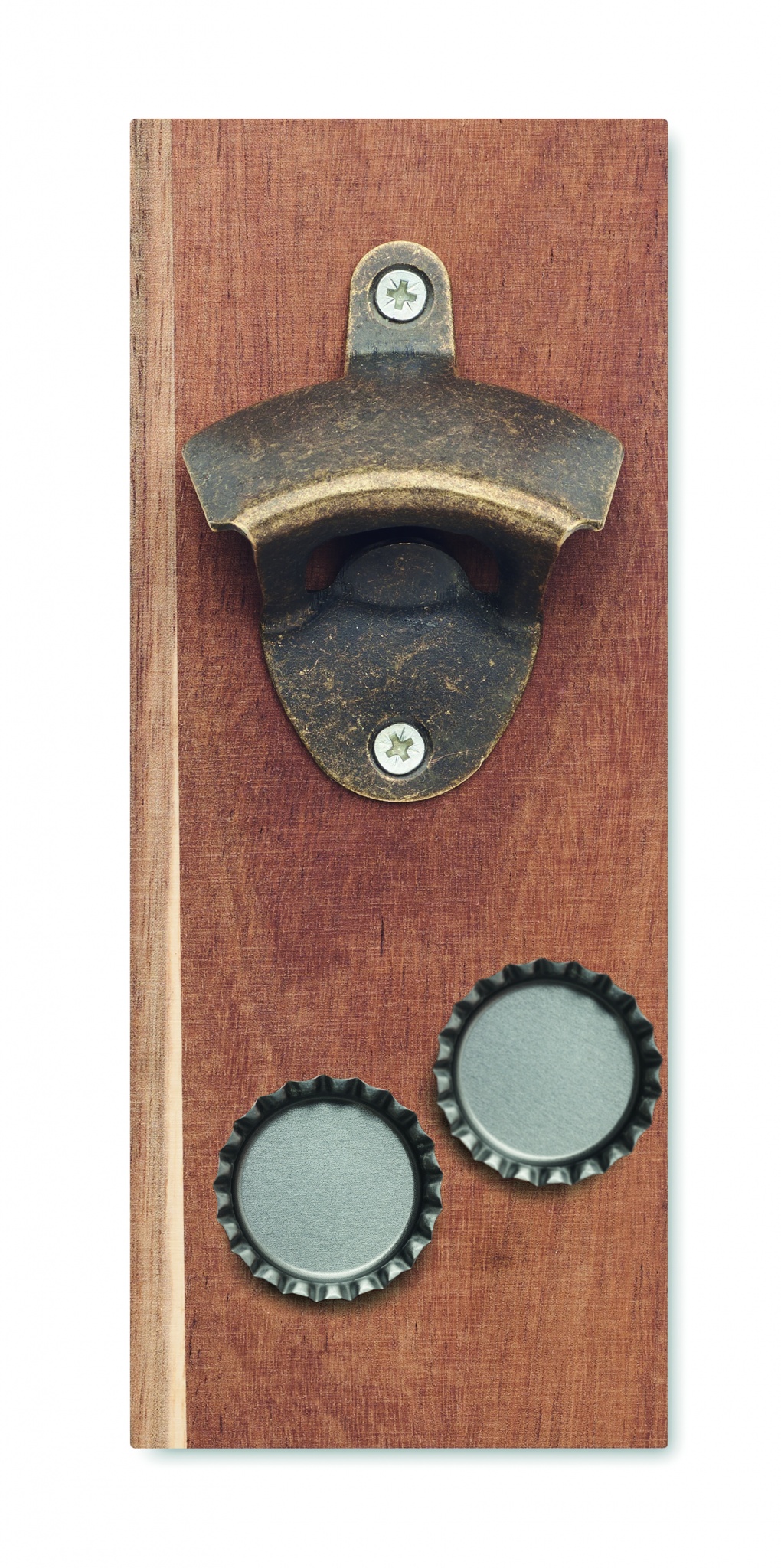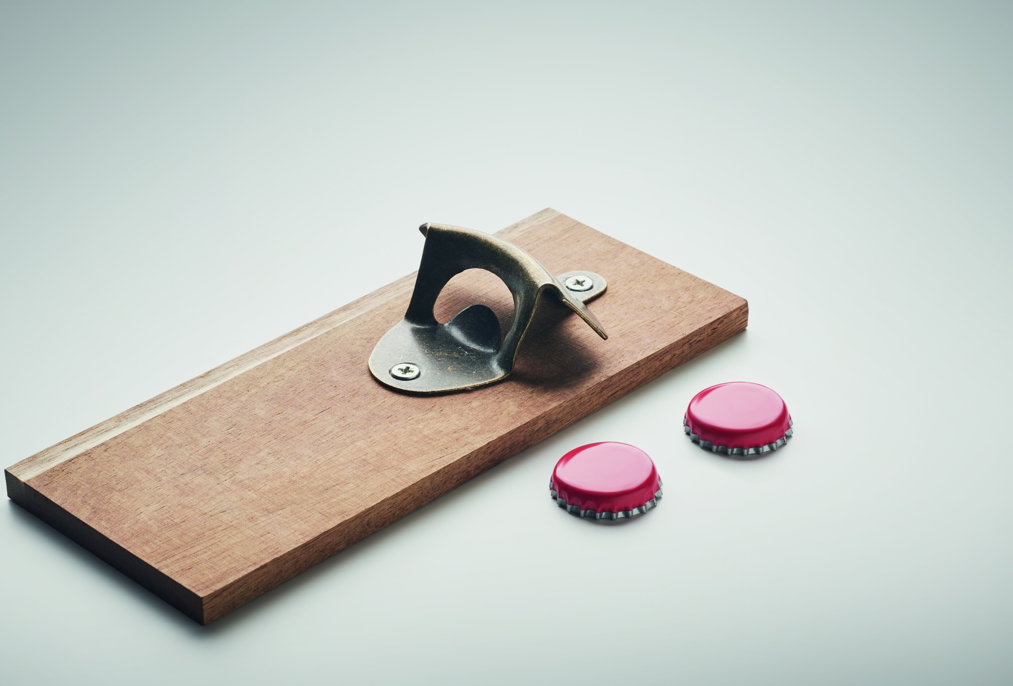 Открывалка для бутылок из дерева акации и железа. Подвешивается на стену при помощи прикрепленного мощного магнита.