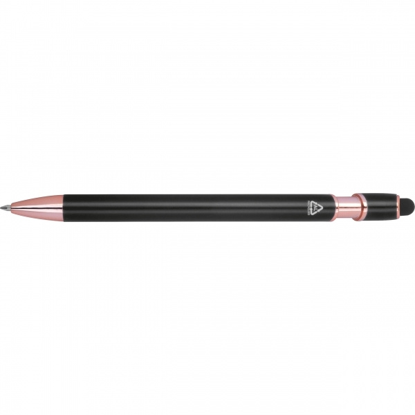 Полугелевая ручка из переработанного алюминия, оснащена сенсорным пером и стержнем синего цвета с увеличенным объёмом (толщина стержня 1 мм). Ваш логотип наносится на корпус с помощью лазерной гравировки.