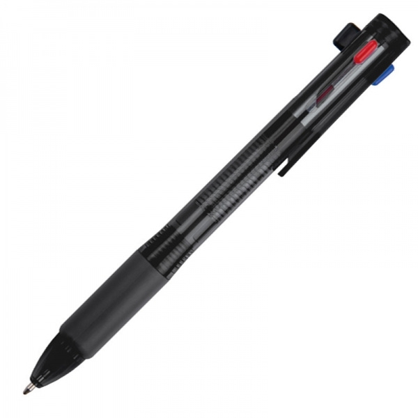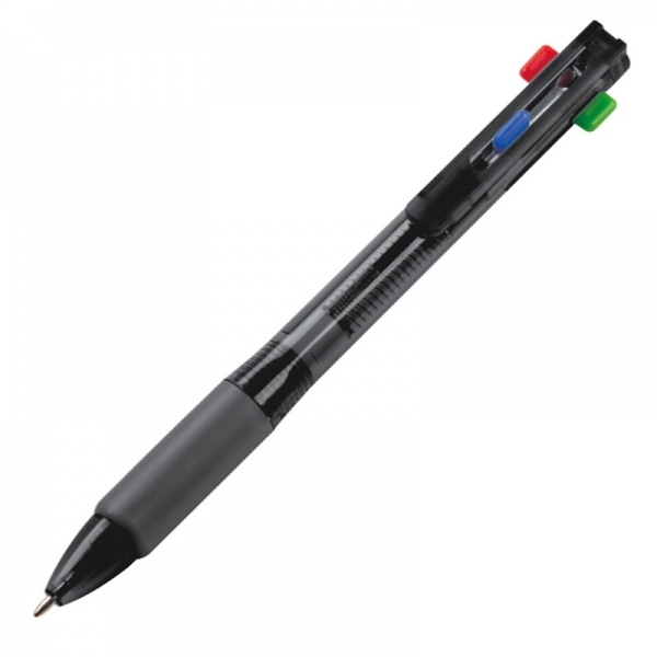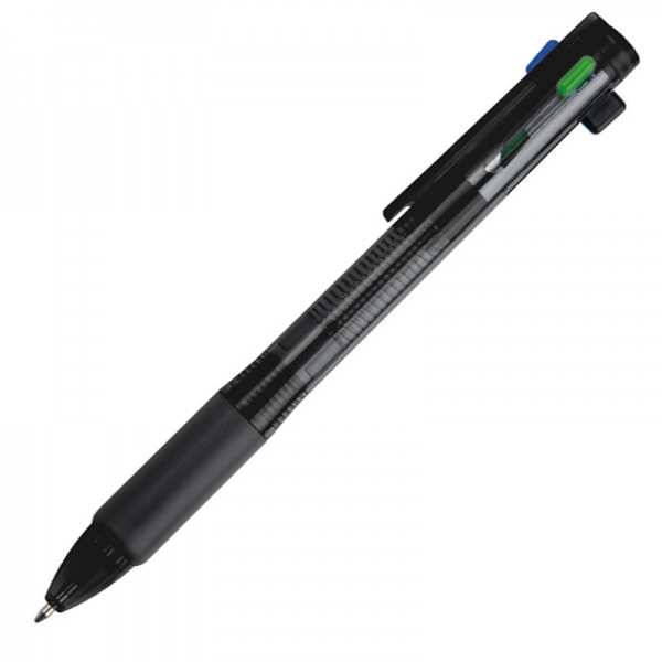 Пластиковая шариковая ручка с 4 цветными пишущими стержнями (синий, черный, красный и зеленый). Ваш логотип будет напечатан под зажимом.