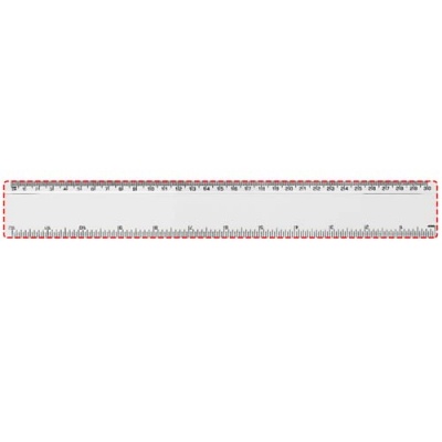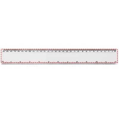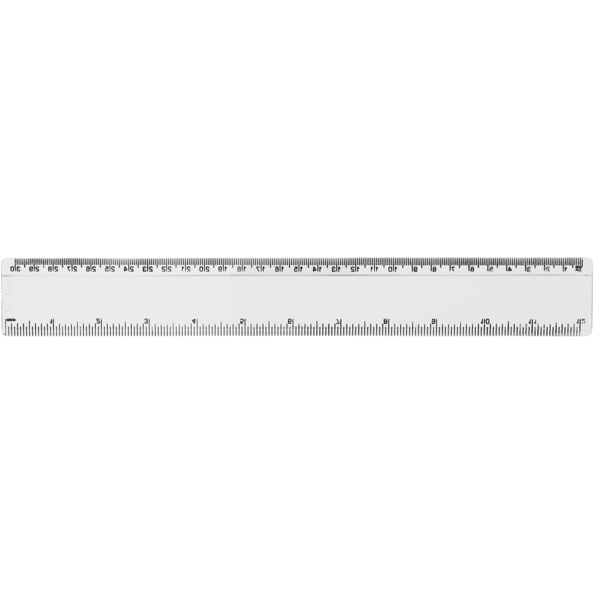 Линейка из твердой пластмассы с разметкой и в сантиметрах, и в дюймах.