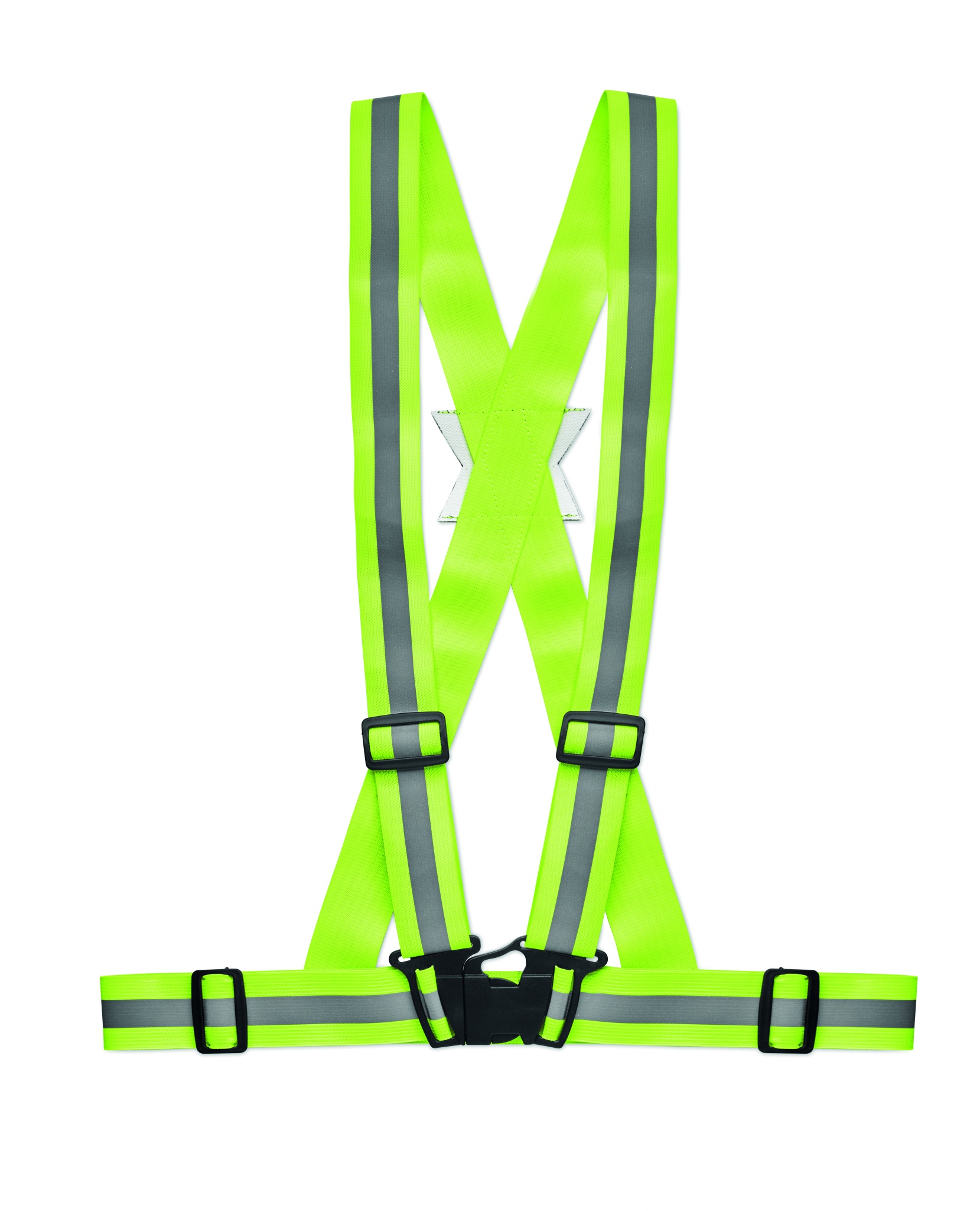 Яркий регулируемый светоотражающий ремень с серебряными полосками. Использовать только для рекламных целей.