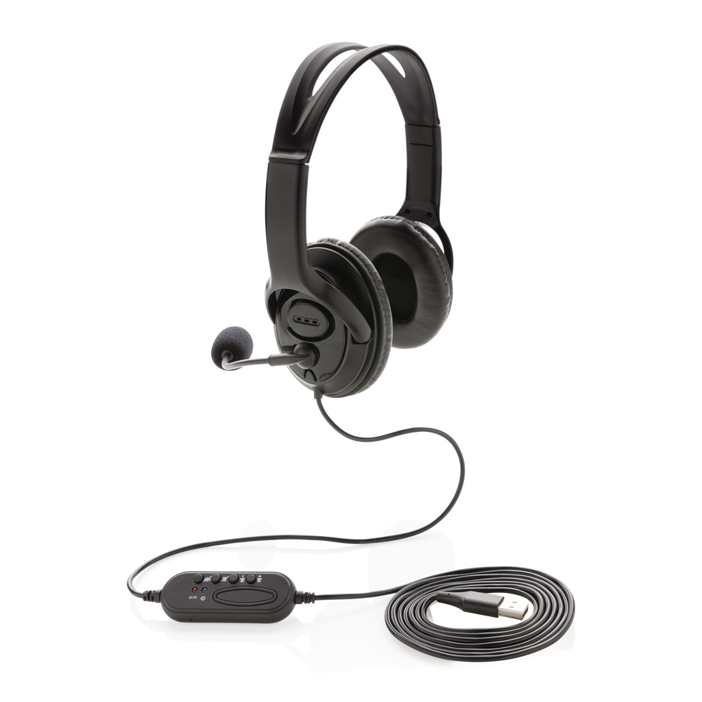 Лого трейд бизнес-подарки фото: Проводная рабочая гарнитура с наушниками