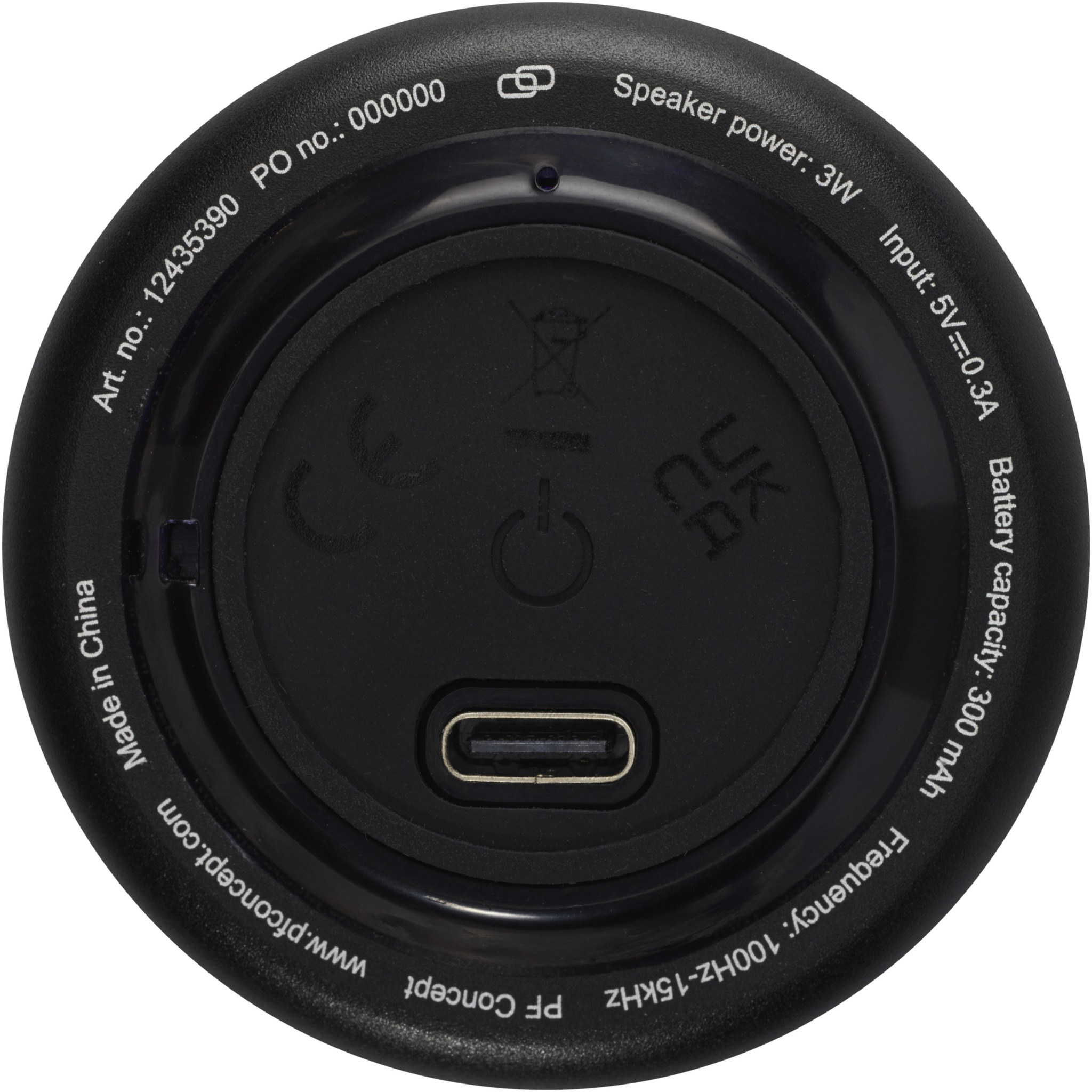 Стильная мини-колонка Rise мощностью 3 Вт с Bluetooth® из переработанных материалов, сертифицированных по стандарту RCS, усиливает звучание вашей музыки, подкастов и т. д. с любого устройства с поддержкой Bluetooth®. Благодаря небольшому размеру она идеально подходит для путешествий. Колонка оснащена встроенными элементами управления музыкой и микрофоном для телефонных звонков и онлайн-встреч. Bluetooth® 5.3 с радиусом действия около 10 метров. Наслаждайтесь музыкой до 1,5 часов на максимальной громкости благодаря литий-ионному аккумулятору емкостью 300 мАч. Время зарядки составляет 1,5 часа. Поставляется с руководством пользователя, зарядным кабелем USB-A на Type-C длиной 30 см и упаковано в коробку из 100% крафт-бумаги вторичной переработки.