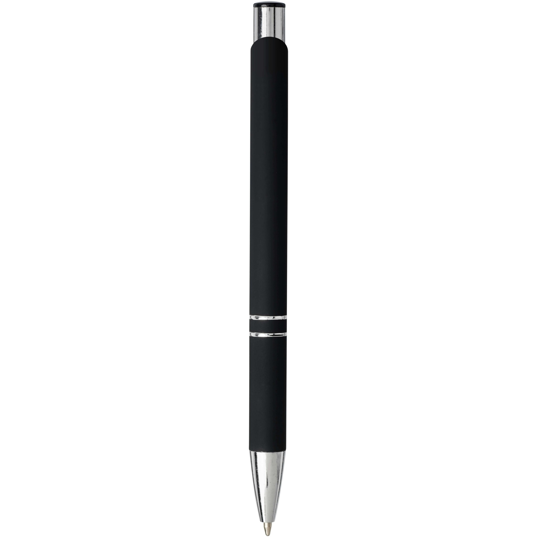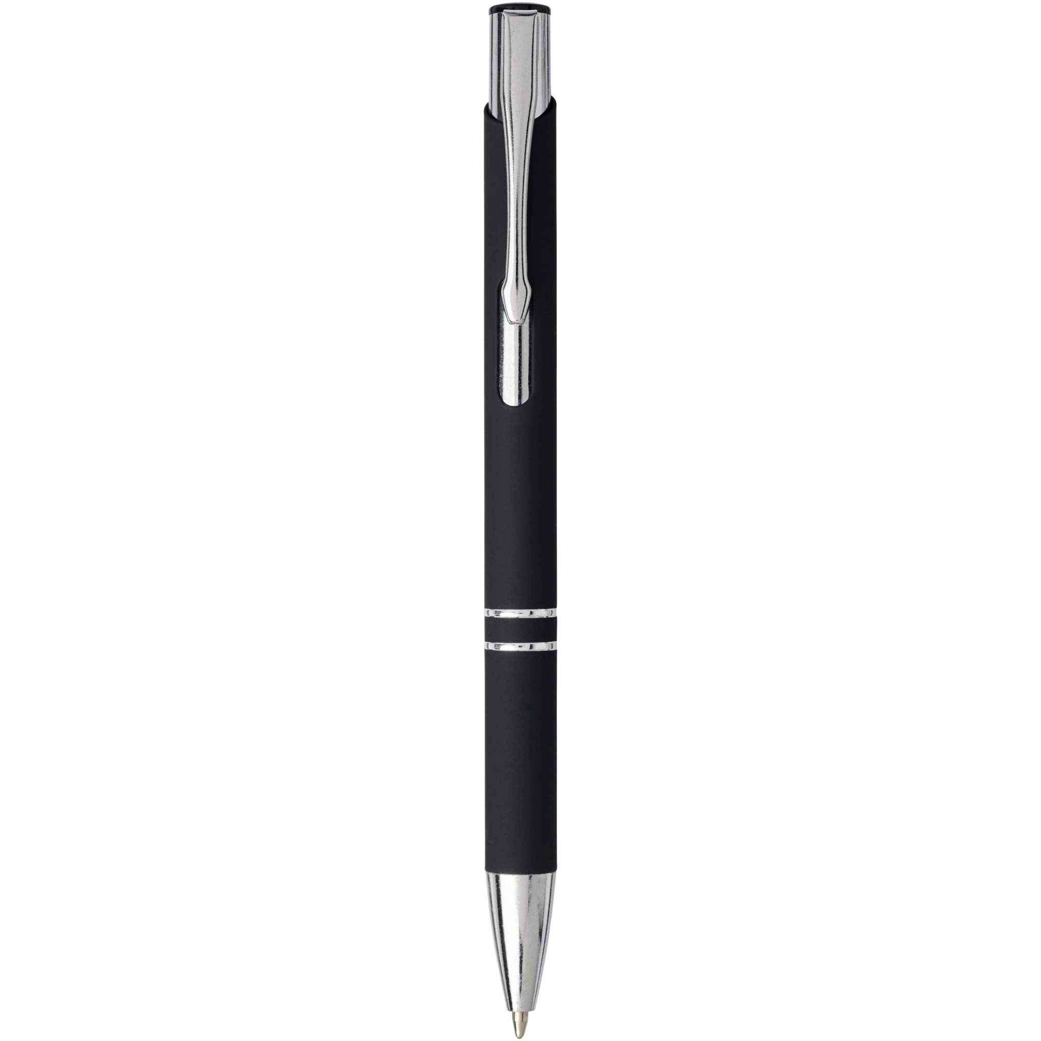 Резиновое покрытие делает ручку мягкой на ощупь, а после лазерной гравировки на ее поверхности проявляется серебристый цвет. Шариковая кнопочная ручка с черным резиновым покрытием, хромированной отделкой и черным колпачком из АБС-пластика. Обширный ассортимент популярных продуктов Moneta представлен в различных стилях и вариантах отделки.