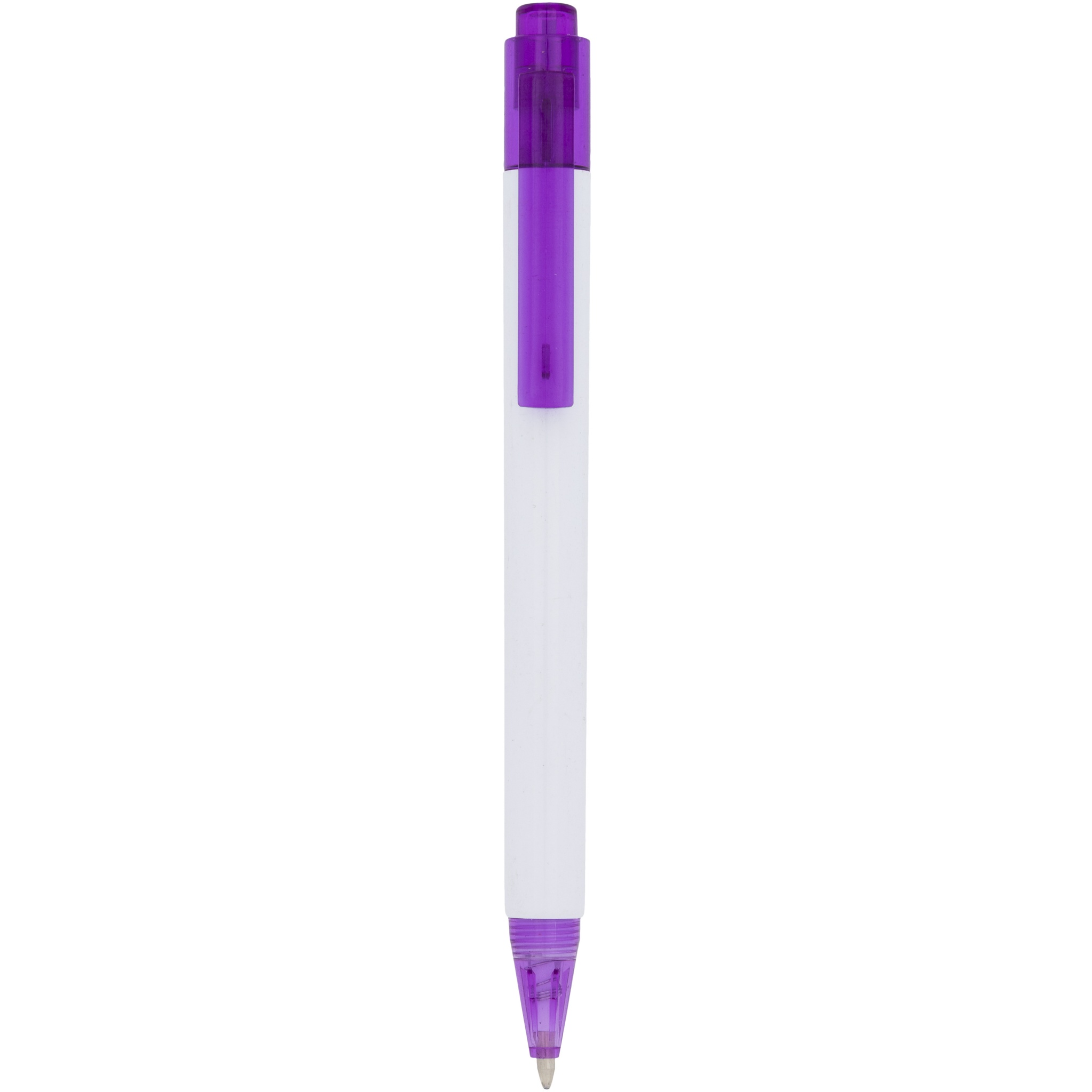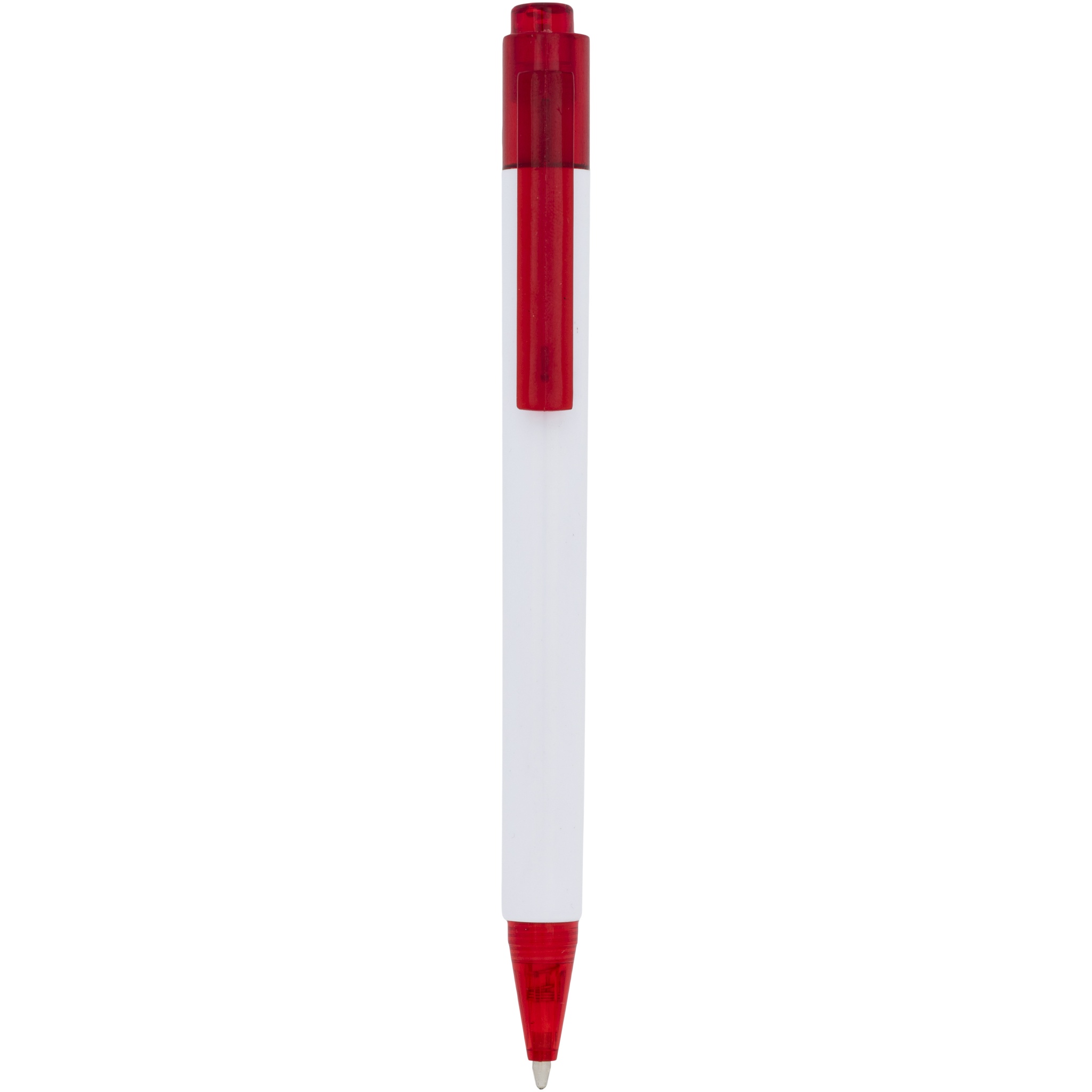 Шариковая ручка Calypso с тонким белым корпусом, полупрозрачным кончиком и зажимом.