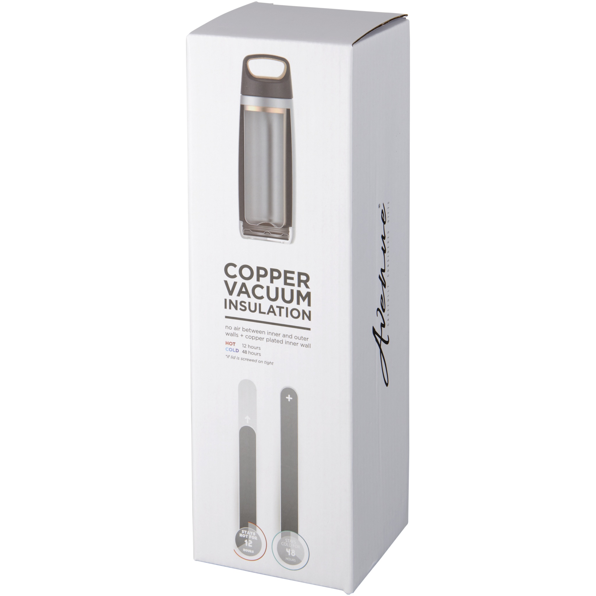 Двустенная вакуумная конструкция из нержавеющей стали с медной изоляцией позволит вашему напитку оставаться холодным в течение 48 часов и горячим - как минимум 12 часов. Кроме того, конструкция препятствует образованию конденсата на внешней стороне бутылки. Закручивающаяся крышка с элементами из пробки и противоскользящее дно. Объем - 600 мл. Упакована в подарочной коробке Avenue.