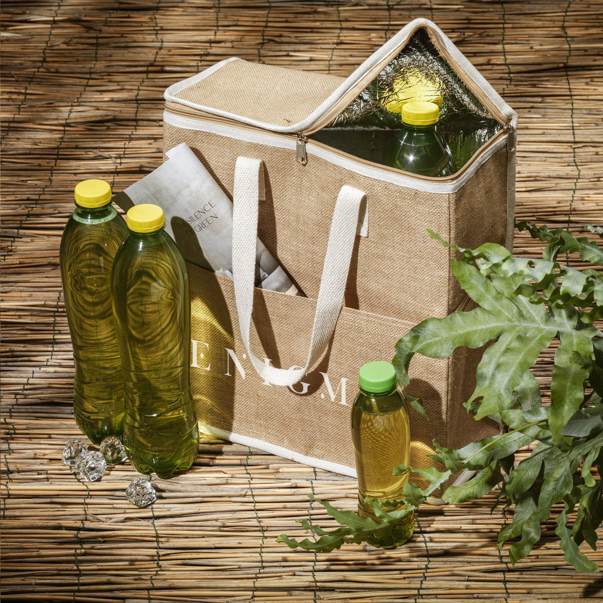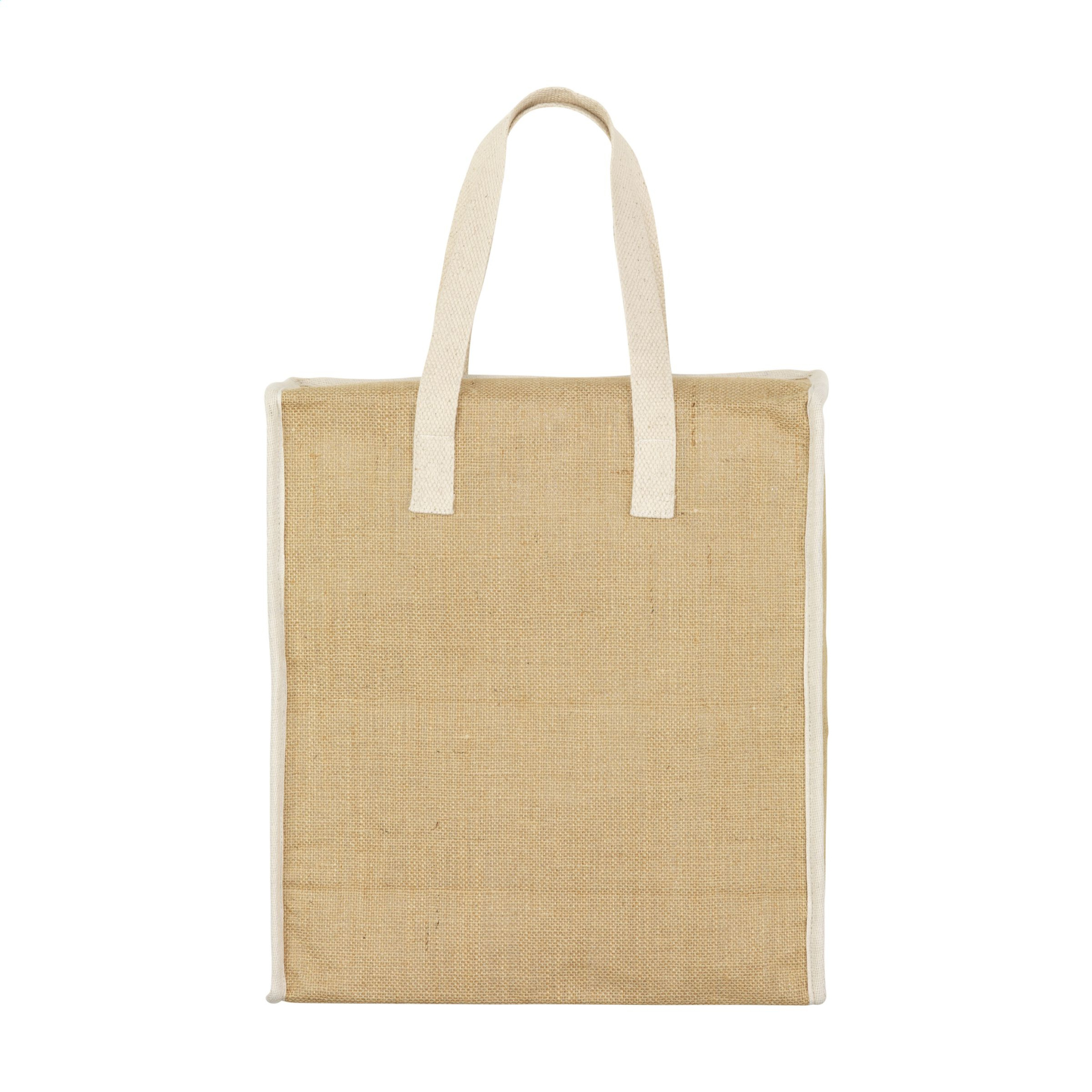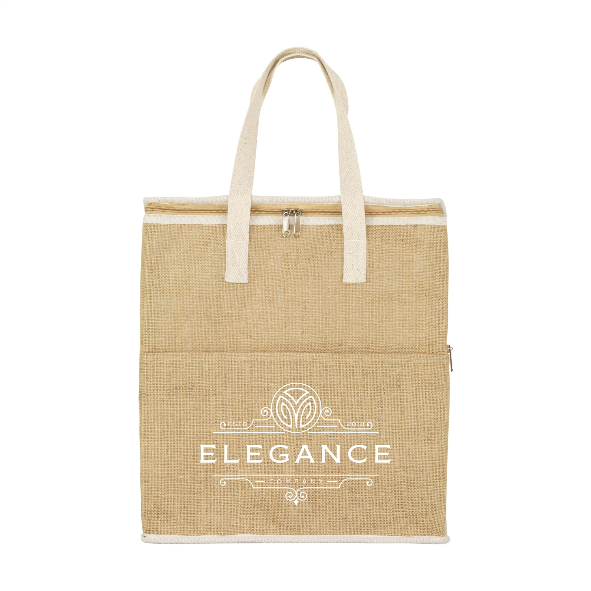 Ух ты! Эта сумка-холодильник из комбинации прочного джута и хлопка с утепленной внутренней частью. Сохраняйте еду и напитки прохладными в течение дня в этой очень просторной сумке-холодильнике. Эта сумка имеет застежку-молнию и передний карман, предлагающий дополнительное место для хранения. Эти дополнительные карманы удобны для хранения вещей, которые не нужно охлаждать, например, телефона или кошелька. Поставляется с плетеными хлопковыми ручками. Вместимость около 24 литров.
