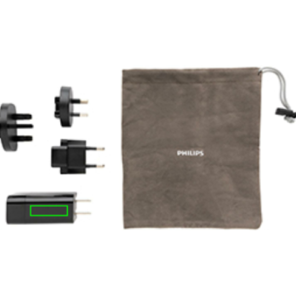 Сверхбыстрое дорожное зарядное устройство Philips PD мощностью 30 Вт. С удобным дорожным чехлом. Поставляется с 4 вилками; встроенная вилка для США и сменные вилки для Австралии, Великобритании и ЕС. Вход: 100–240 В, 50–60 Гц, 0,7 А. Выход USB A 5 В/2,4 А, Type-C 5 В/3 А, 9 В/2 А, 12 В/1,5 А. Упаковано в подарочную коробку Philips.