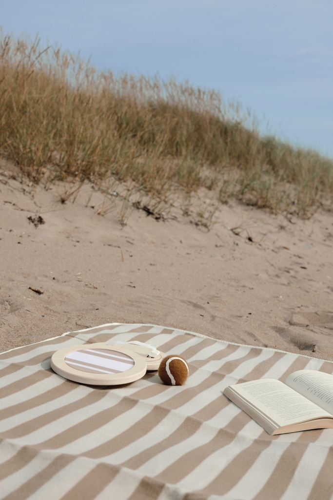 Это идеальная игра для отдыха на открытом воздухе, которую можно взять с собой на пляж или в парк. В комплект входят один мяч и два ловца на липучках, изготовленные из сертифицированной FSC® фанеры. Дизайн спортивный, но изысканный, с двухцветным полосатым узором на ловцах и соответствующим коричневым мячом. Игра удобно упакована в холщовую сумку с сетчатой спинкой, что позволяет легко брать ее с собой. Инструкция прилагается.