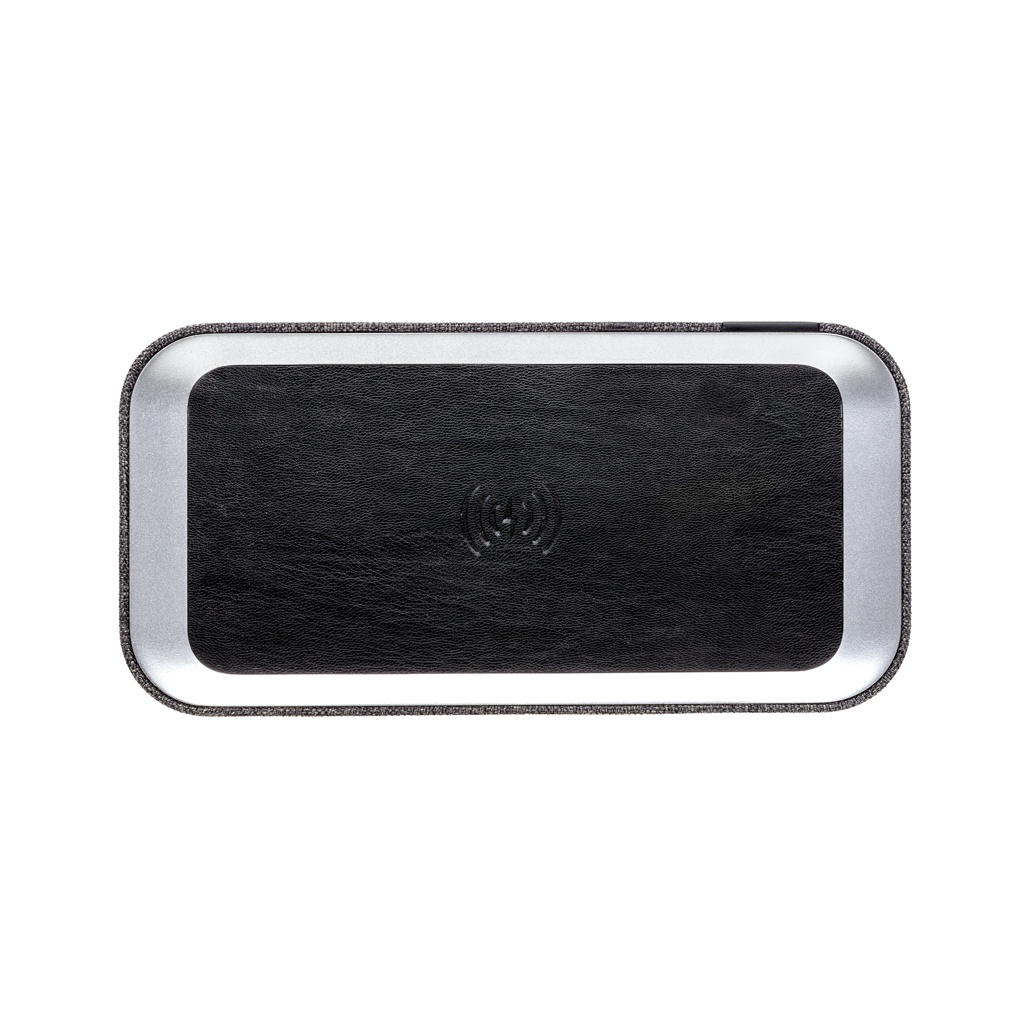 Беспроводная колонка Vogue 6 Вт с функцией зарядки сочетает в себе две основные функции современной жизни: прослушивание любимой музыки и зарядка мобильного устройства без проводов. Модный тканевый дизайн идеально подходит для вашего стола, дома или в дороге. Колонка использует беспроводное соединение BT 3.0 для плавного подключения и имеет рабочее расстояние до 10 метров. С функцией громкой связи и функцией приема вызова. Аккумулятор емкостью 4000 мАч позволяет воспроизводить музыку до 10 часов или дважды заряжать мобильный телефон (в зависимости от размера батареи вашего телефона). Если ваш телефон не поддерживает беспроводную зарядку, вы также можете использовать порт USB на задней панели, чтобы зарядить телефон традиционным способом с помощью кабеля. При использовании обеих функций рекомендуется держать устройство подключенным к источнику питания с помощью прилагаемого кабеля micro USB длиной 150 см. Вход: 5 В/1 А. Выход: 5 В/1 А. Беспроводной выход: 5 В/1 А 5 Вт. Зарегистрированный дизайн®