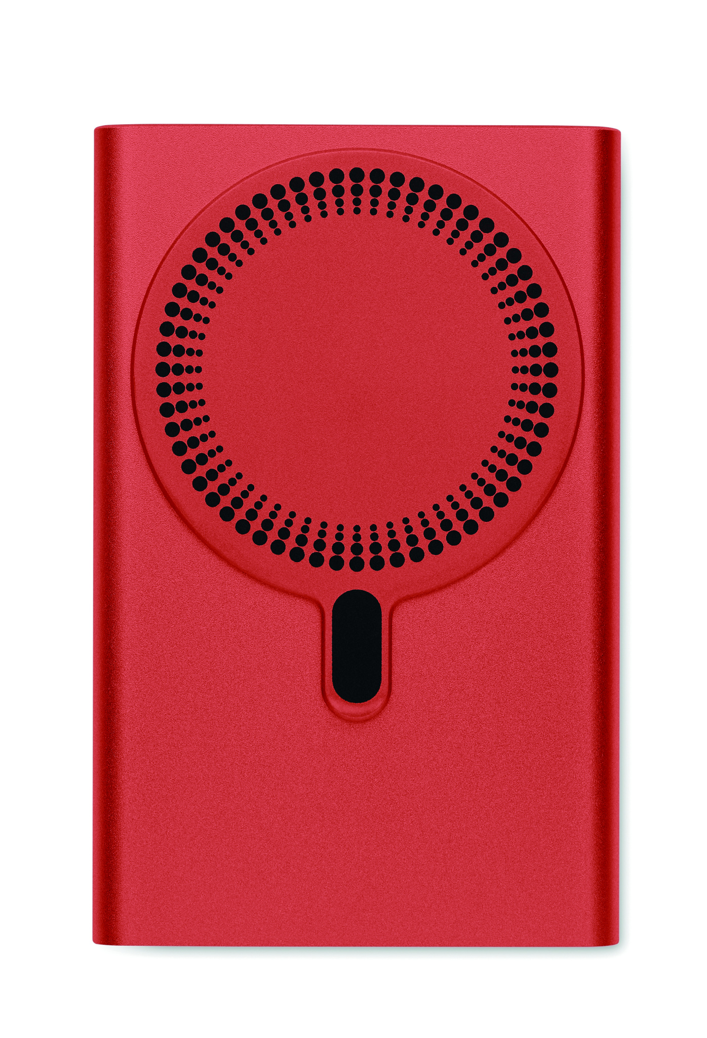 Magnetic wireless charger (15W) in recycled aluminium and power bank (5000 mAh). Output: DC 9V/1.66A. Supports quick charging technology (20W). In/Output: Type-C. Power delivery (PD) support to charge the newest laptop MacPro®. In/Output: Type-C.