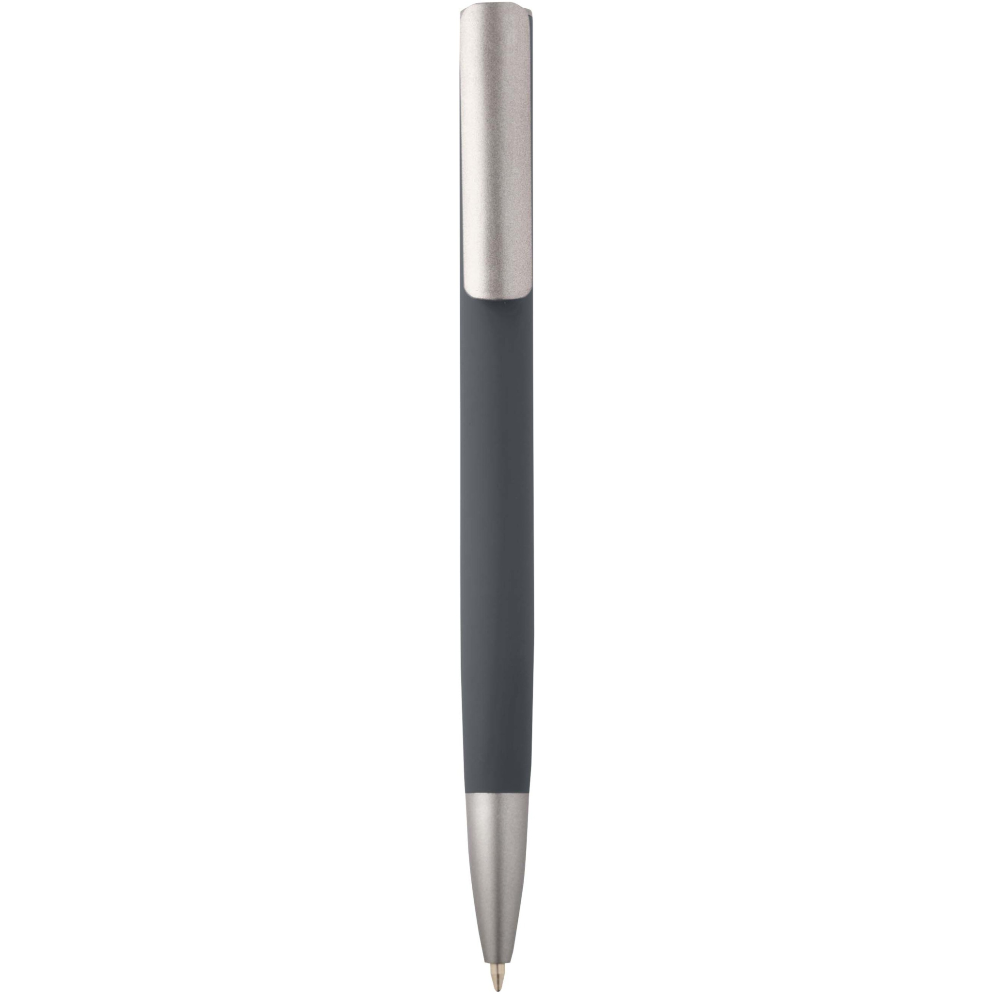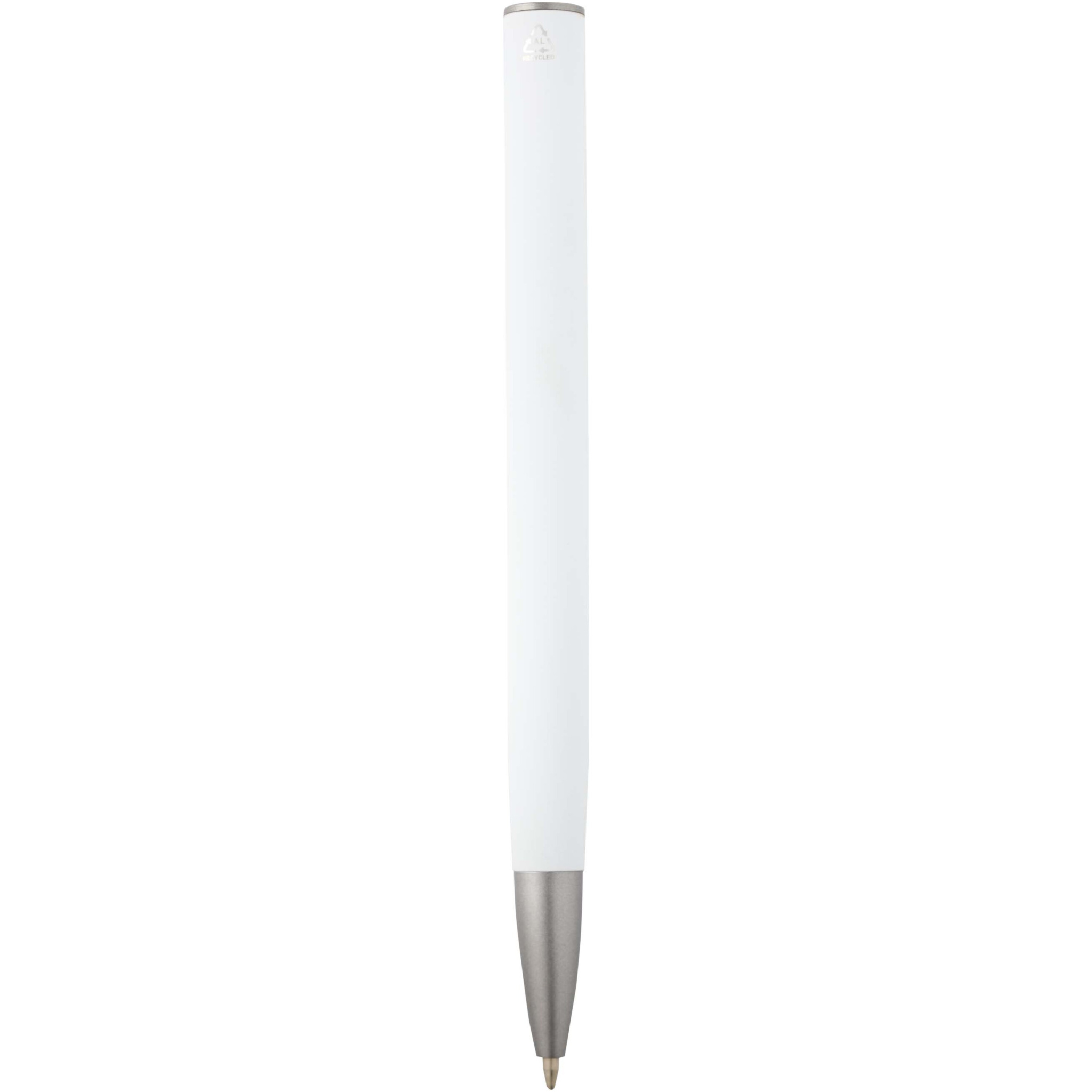 Шариковая ручка с корпусом из переработанного алюминия и посеребренным зажимом из пластика ABS. Цвет чернил: синий. Длина непрерывной линии: 800 метров. Размер пера: 1,0 мм.