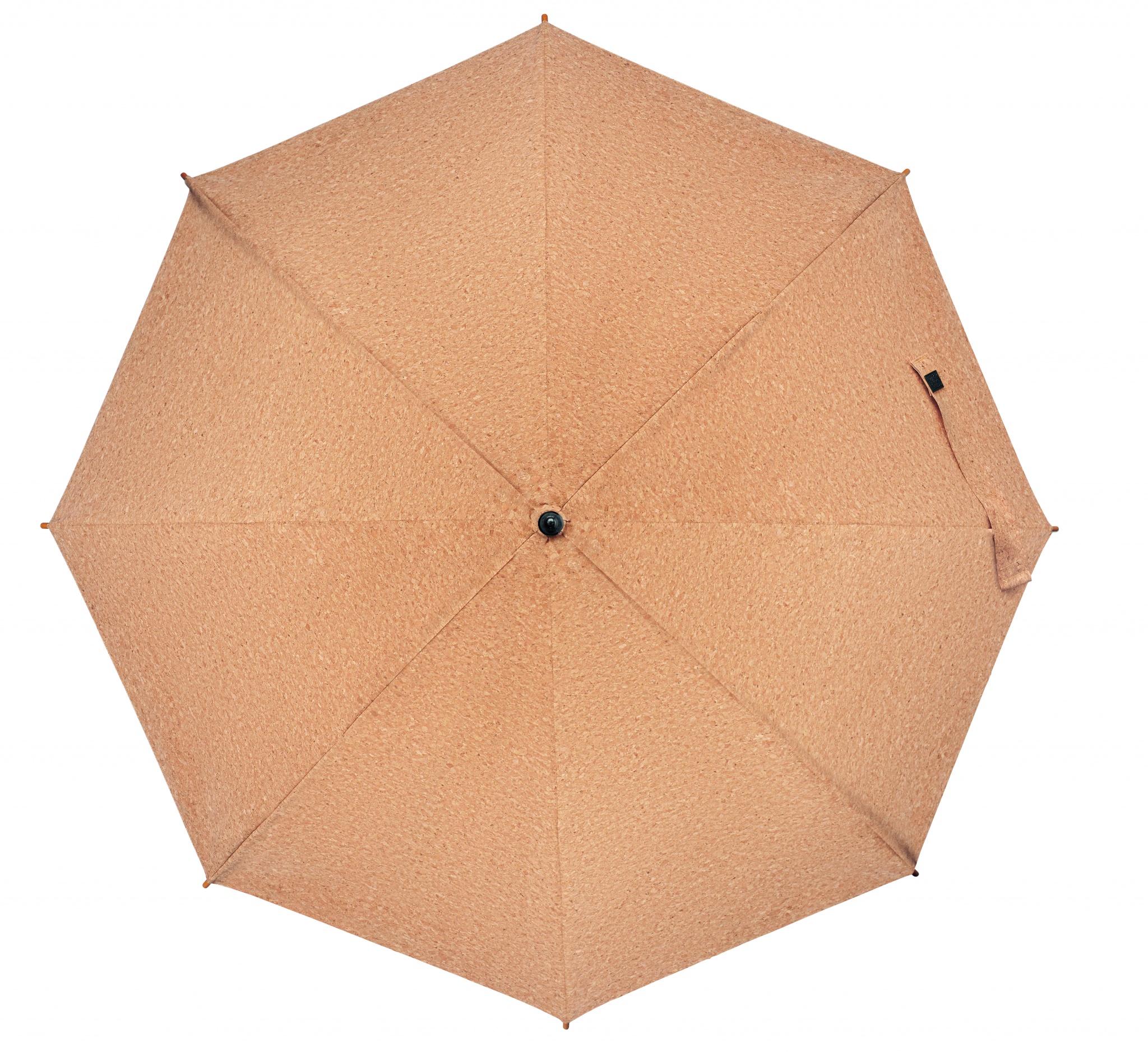 Пробковый зонт 25 дюймов с бамбуковым стержнем и деревянной ручкой, спицы из стекловолокна. Черные пластиковые наконечники и топ. Ручное закрытие.