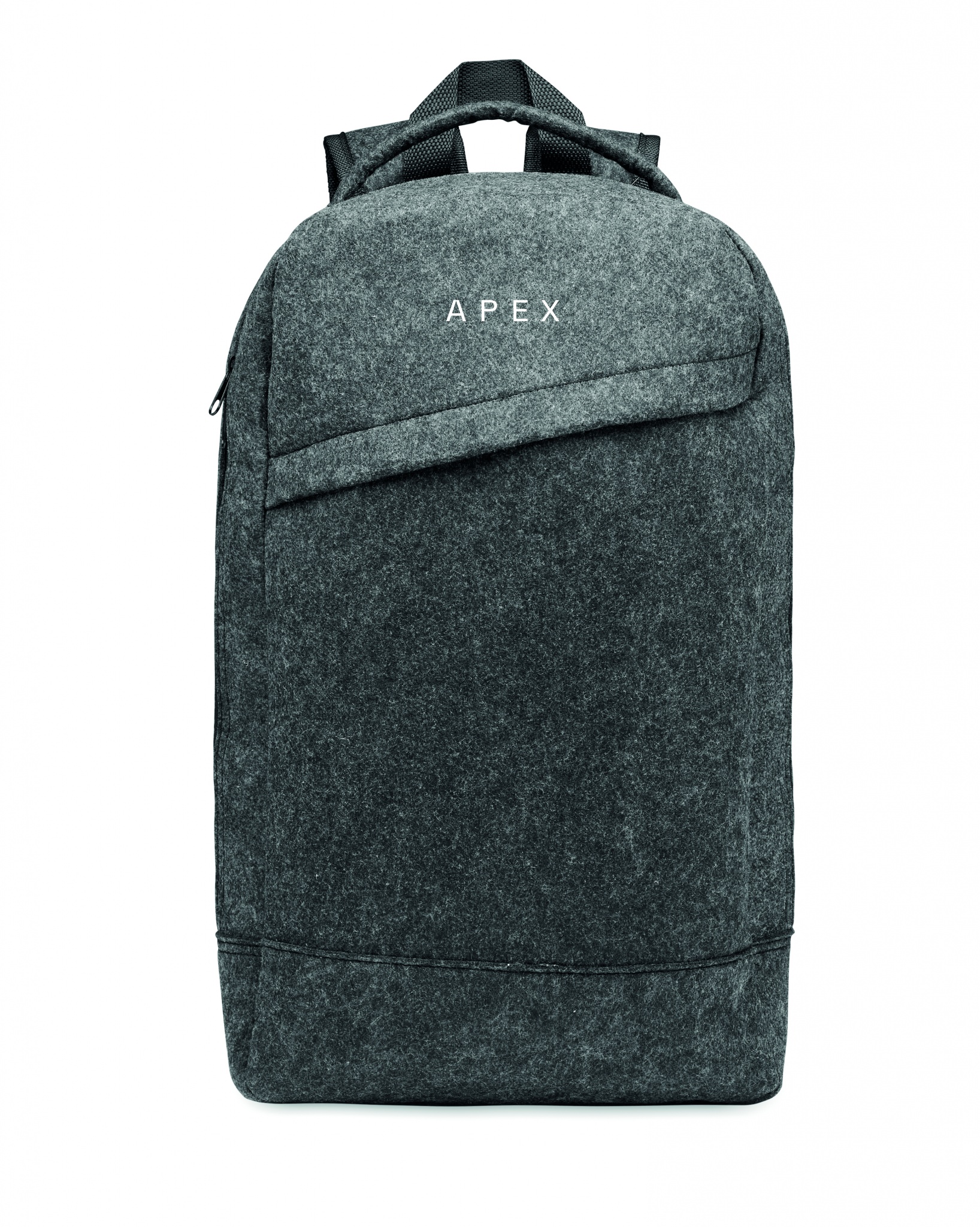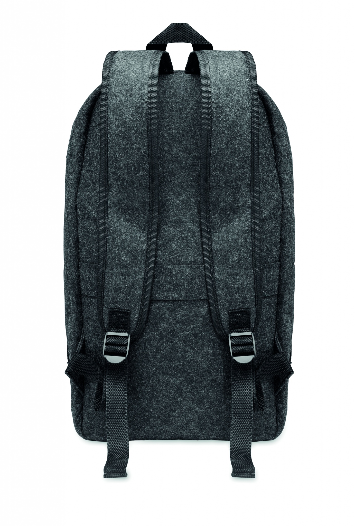 13-tums laptopryggsäck i RPET-filt med vadderad axelrem och rem samt ett stort innerfack. Fack med dragkedja på baksidan för bättre skydd och säkerhet.