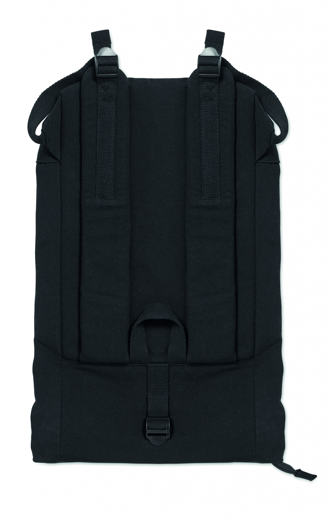 15'' dataryggsäck med dragkedja och rullstägning i återvunnen bomull och återvunnen polyester (70%/30%). Ficka med dragkedja på framsidan. Vadderad rygg och axelremmar. 340gr/m².
