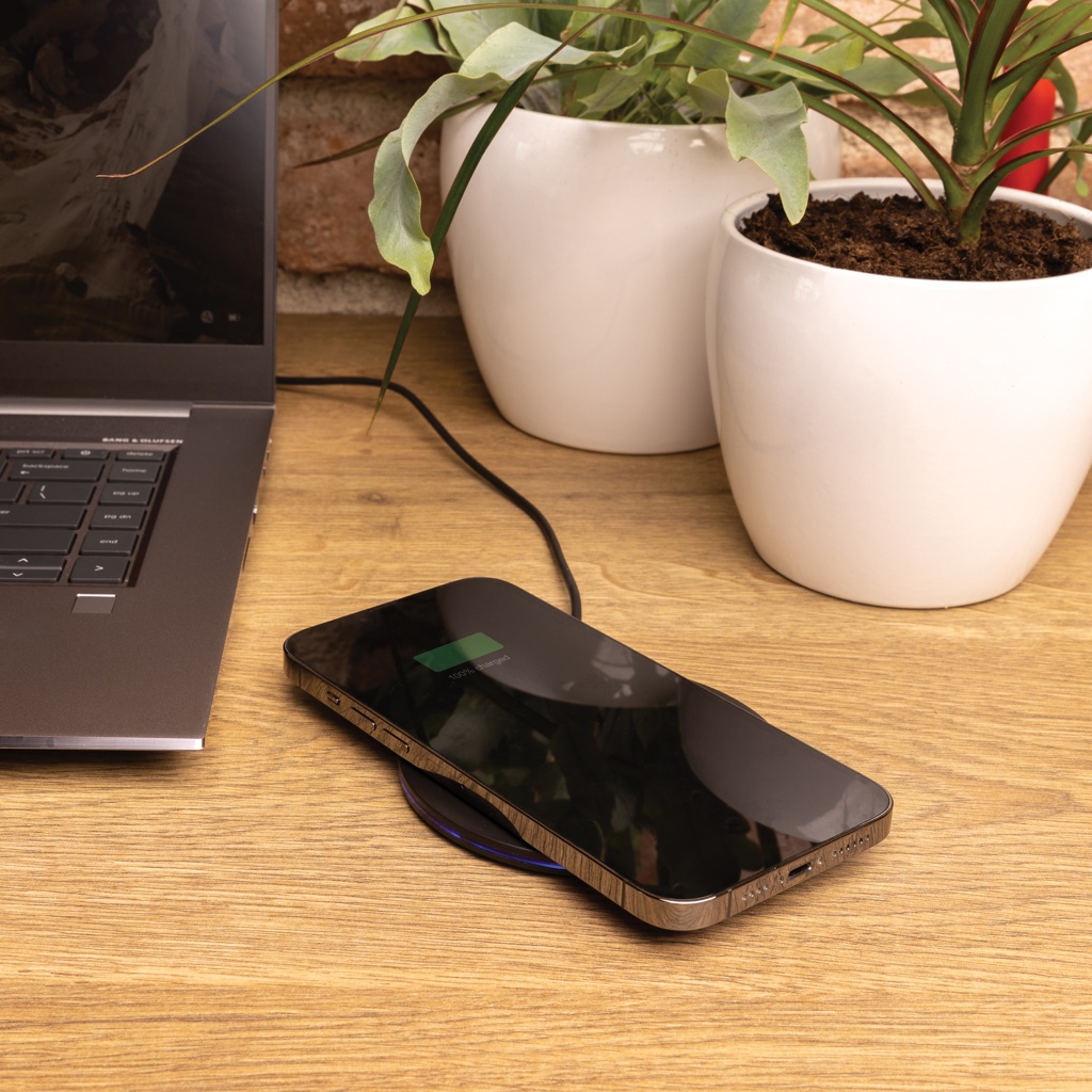 Logotrade profilreklam bild: 15W trådlös snabbladdare i RCS återvunnen plast