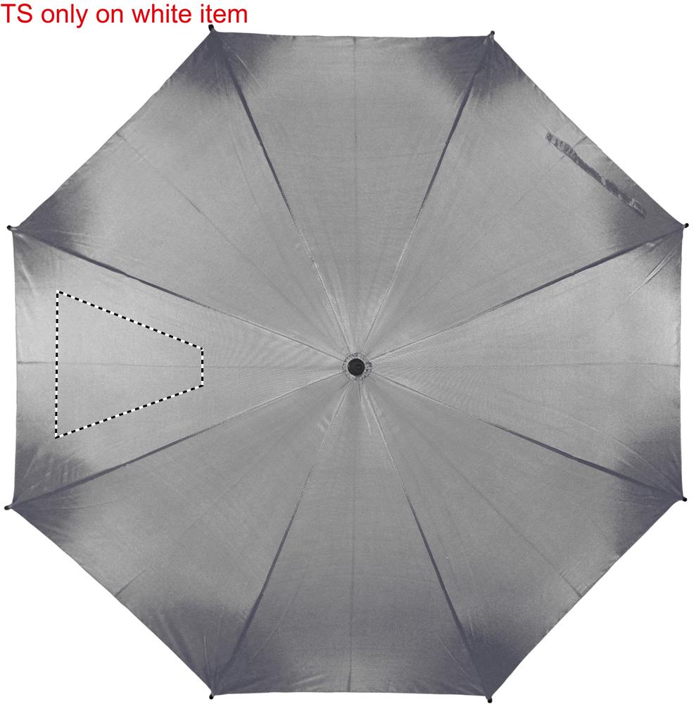 Promenadparaply, 23 tums i 190T polyester med svart pläterat stålskaft och spröt. Svarta plast tippar. Rakt svart handtag i mjukt EVA material. Manuel stängning och automatisk öppning.
