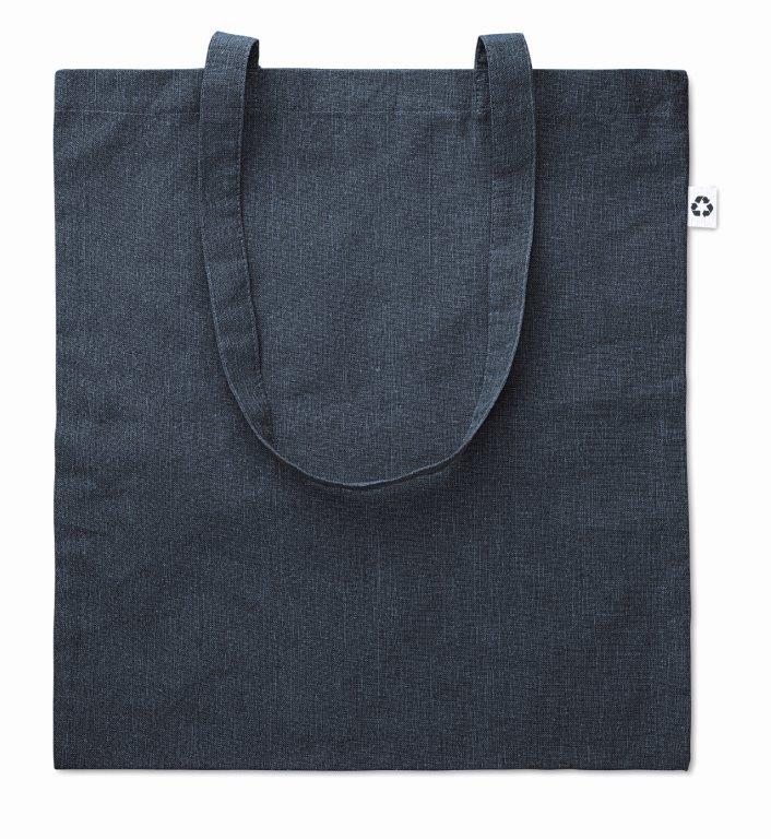 Tygkasse i tvåfärgad återvunnen bomull och återvunnen polyester med långa handtag (20%/80%). Ca 140gr/m². Den här artikeln kan krympa efter tryckning.