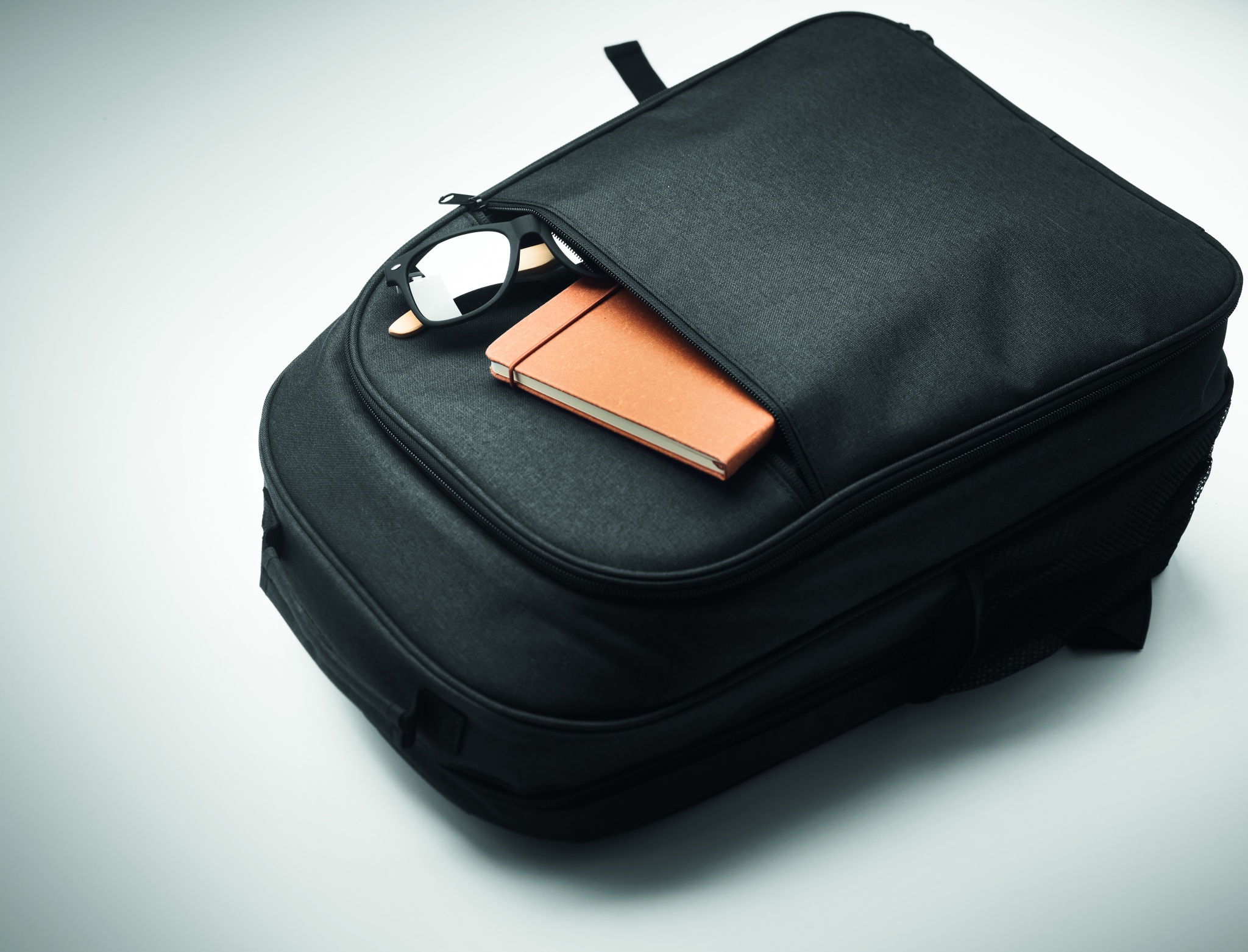 Kombinerad dataryggsäck och kylväska/ryggsäck i 300D RPET med 15-tums fack för laptop. Praktisk till jobbet och att få med lunchlådan. Ficka fram med dragkedja och ett nätfack på sidan.