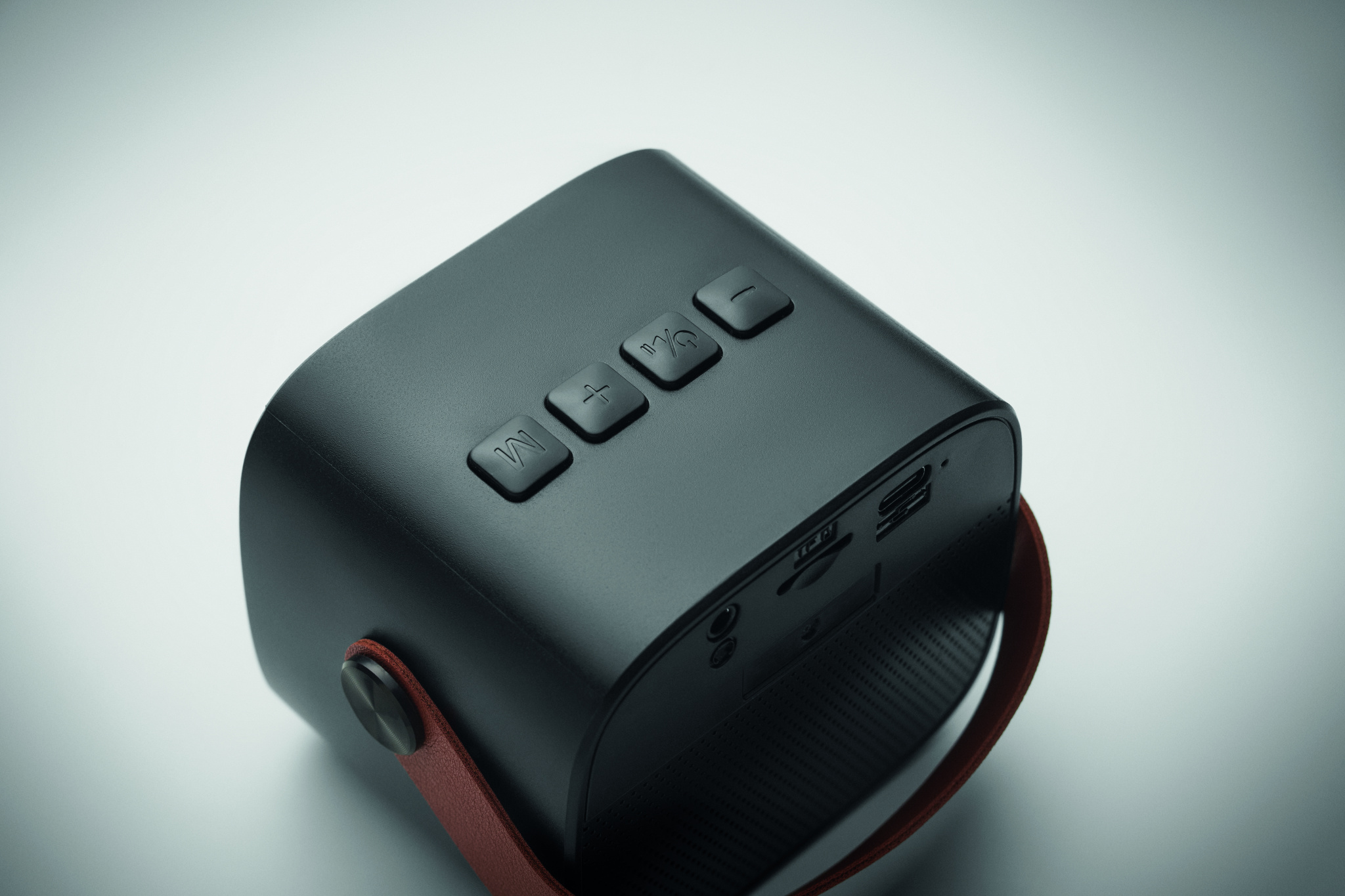 5.0 trådlös högtalare i återvunnen ABS med PU-handtag. 1 uppladdningsbart Li-ION 500 mAh-batteri ingår. Inkluderar en SD-kortport och en AUX/ USB-kabel. Uteffekt: 5W, 3 Ohm och 5V. Speltid ca 4 timmar.