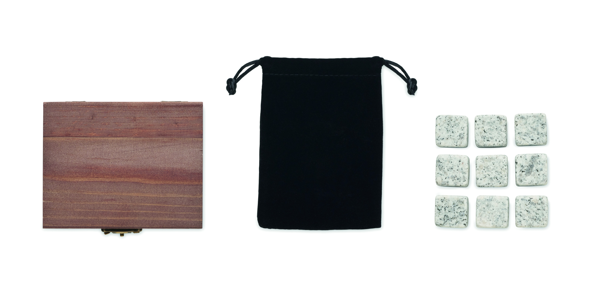 Logotrade reklamprodukter bild: 9 isbitar av sten i låda