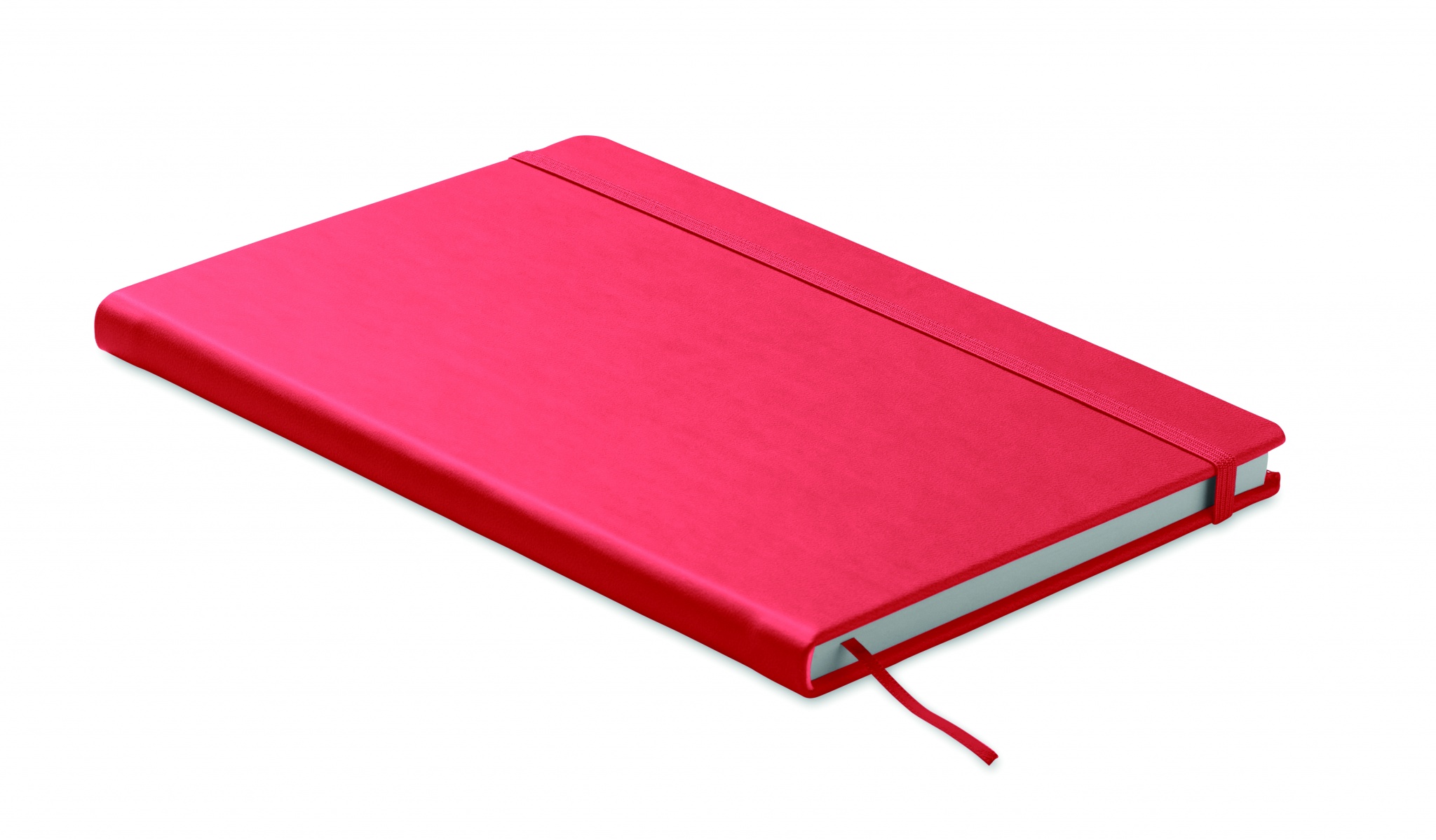 A5-anteckningsbok med hårda PU-pärmar. Inbunden med 200st linjerade sidor (100 ark) av återvunnet papper (80 gsm). Matchande elastiskt band för stängning och sidmarkeringsband. Tillverkad i EU.