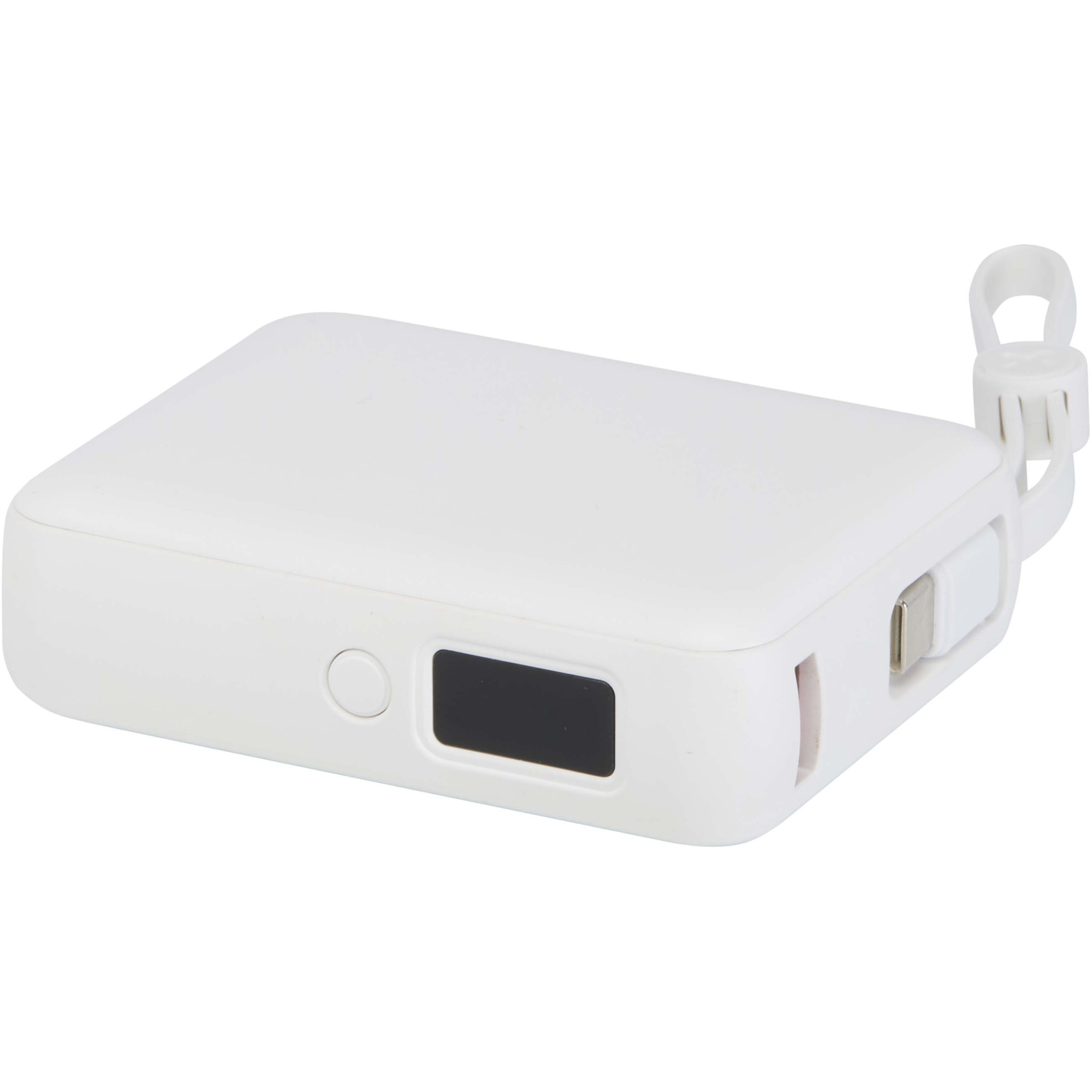 Acrux 10 000 mAh 35 W powerbank för surfplattor med inbyggd Type-C-kabel – tillverkad av återvunnen plast, Vit