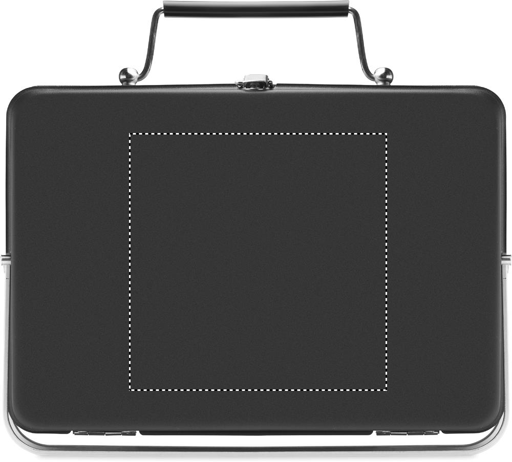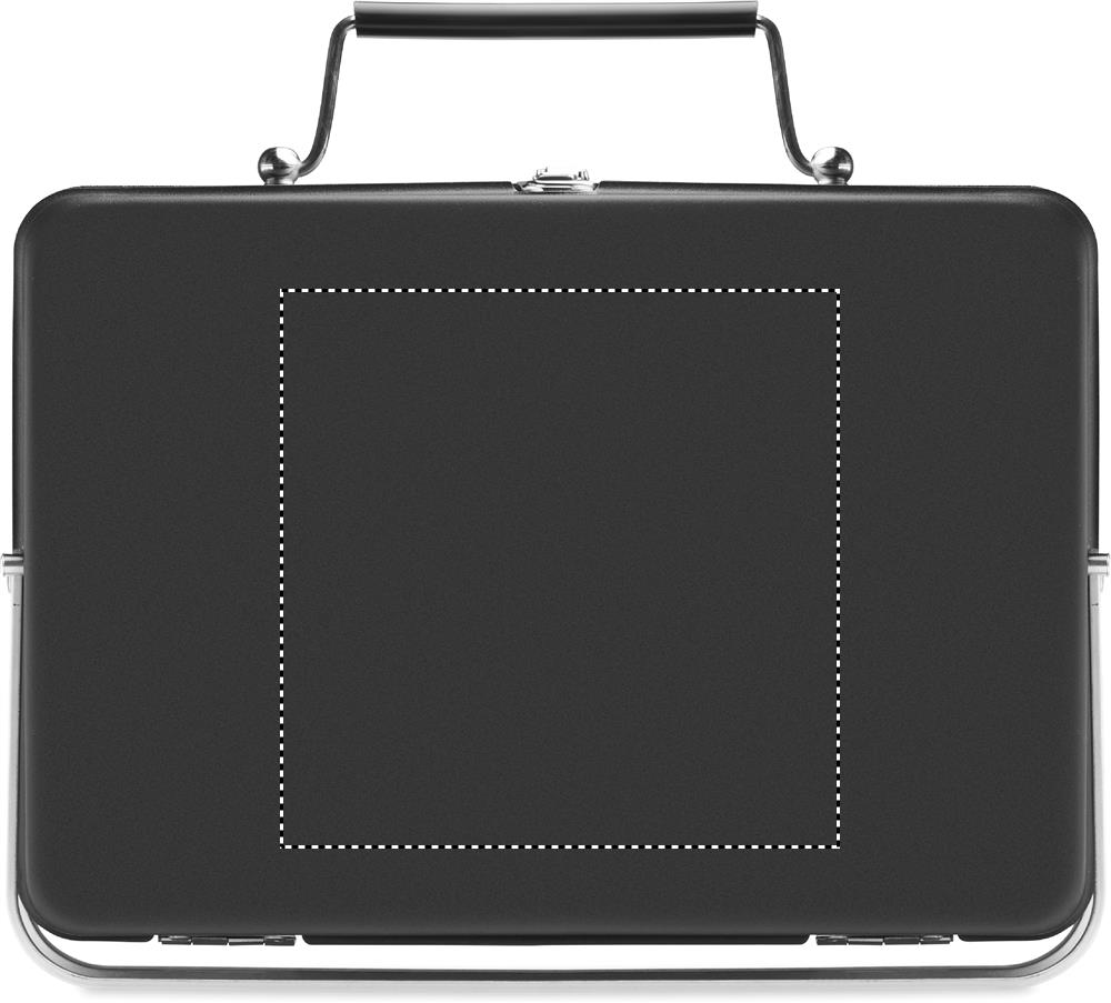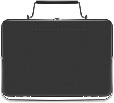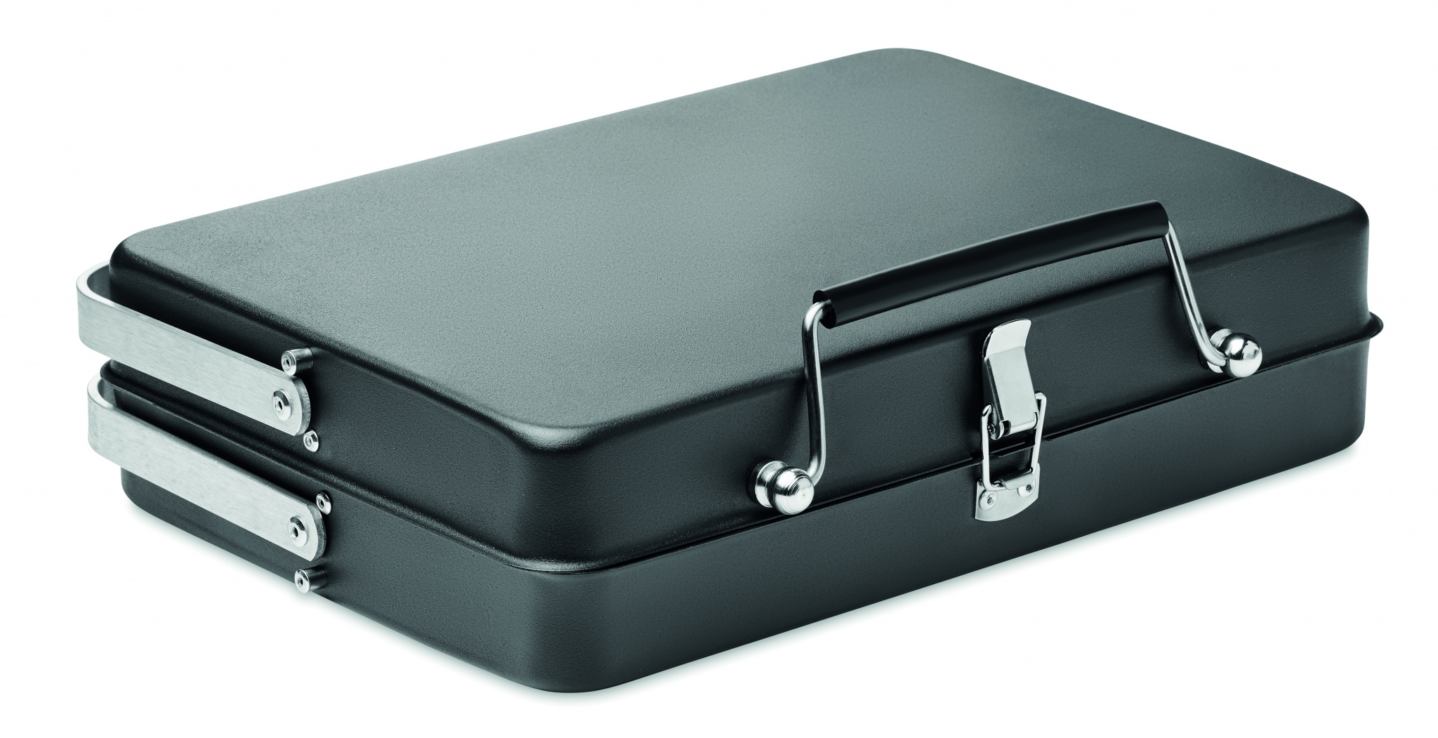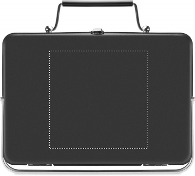 Bärbar kolgrill i rostfritt stål med grillgaller och stativ i botten. Utformad som resväska med handtag. Kol medföljer ej. Mått: 29,5x22x7cm
