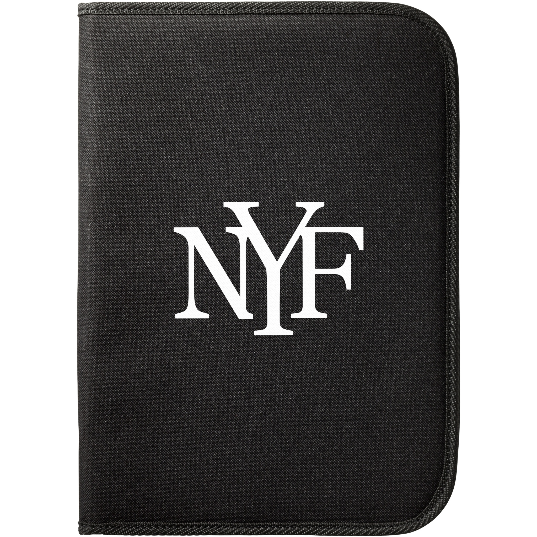 Mapp med blixtlås, dokumentfickor och anteckningsbok med 20 linjerade sidor. Pennor och tillbehör ingår inte.