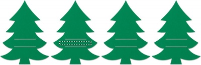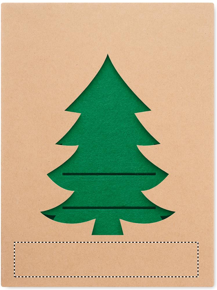 Set med 4st RPET-filtbestickhållare i julgranform i presentkartong av återvunnet papper. Eftersom alla ser fram emot julmiddagen kan dekorationerna vara lika viktiga som maten. Dekorera ditt bord och tallrikar med dsnygga bestickhållare i filt, gjorda av återvunnet PET-material.