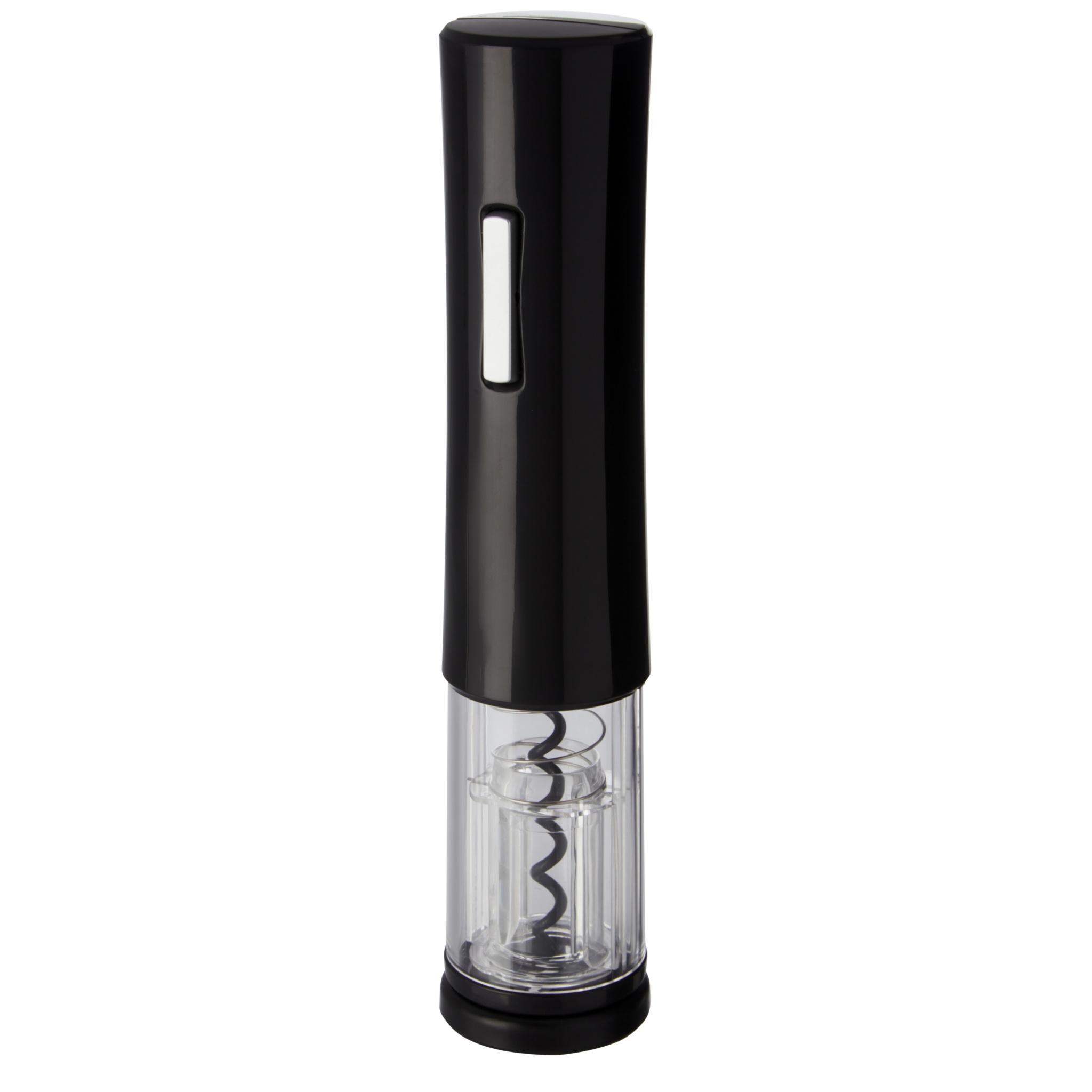 Elektrisk vinöppnare som har en folieskärare. Den använder 4 AA-batterier (ingår ej).