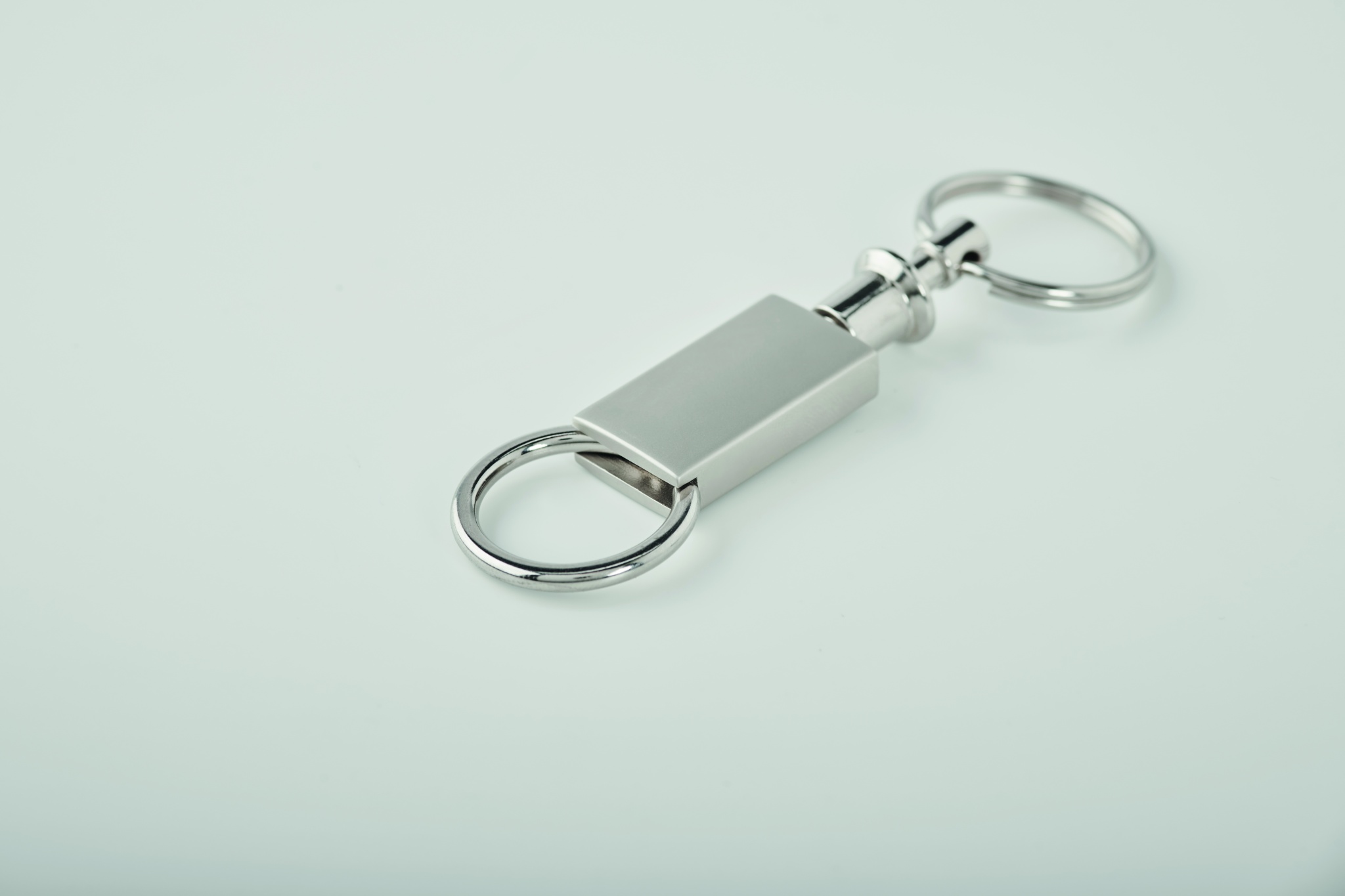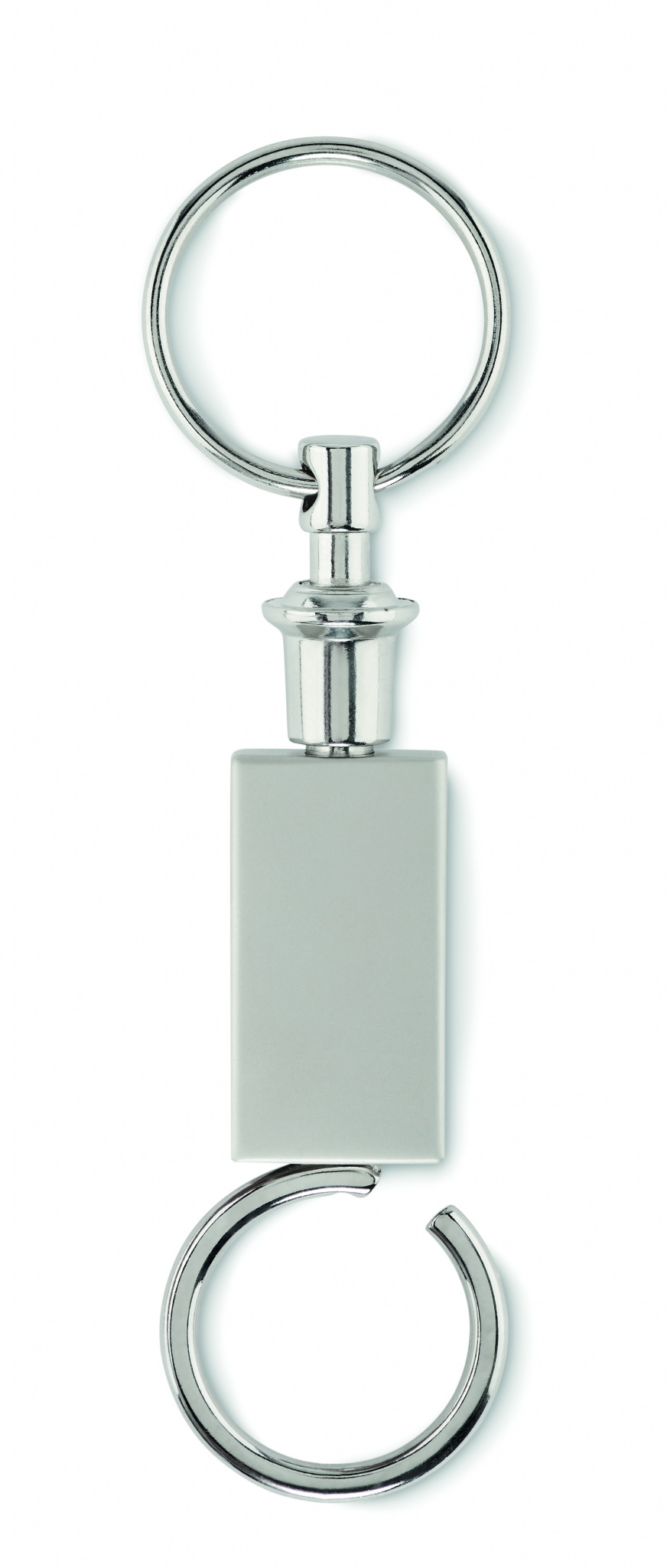 2 i 1 nyckelring i zinklegering. Dra isär nyckelringen och den har 2 nyckelringar.