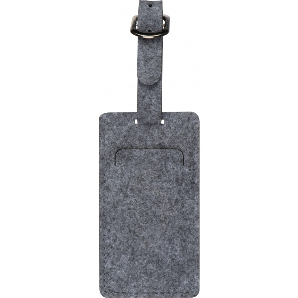 Bagagelapp i filt med justerbar fäste och ett gångjärnslock över adressfältet. Vi trycker din logotyp på ena sidan.