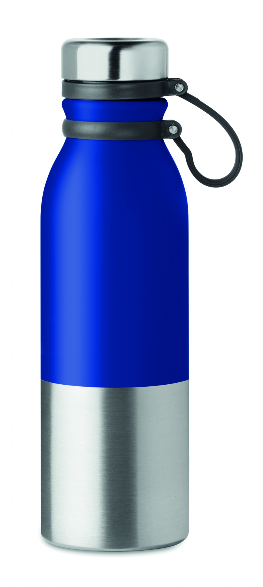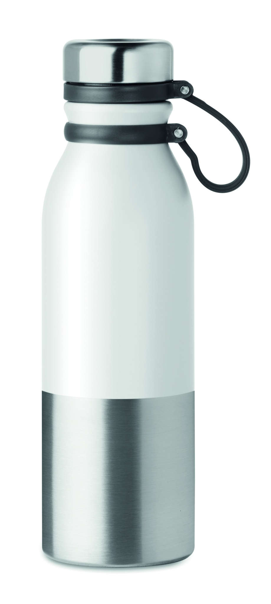 Vattenflaska/termos med dubbelväggad i rostfritt stål med silikon runt om för ett bra grepp. Termosen är läckagefri. Kapacitet: 600 ml. Läckagefritt.