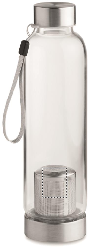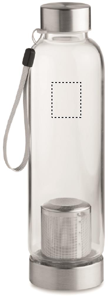 Glasflaska med enkelvägg i värmebeständigt borosilikat glas. Flaskan har en inbyggd tesil i botten och ett fodral i neopren. Volym: 500 ml. Ej anpassad för drycker med kolsyra. Läckagefritt.