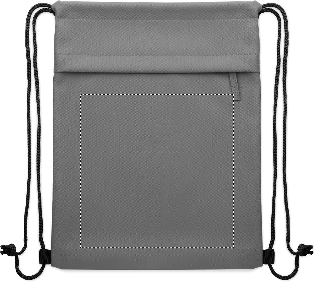 Gymnastikpåse med PU-belagd 600D RPET-polyester och foder av 190T RPET-polyester. Ficka med dragkedja på framsidan.