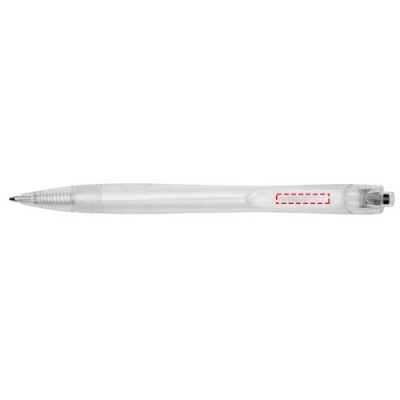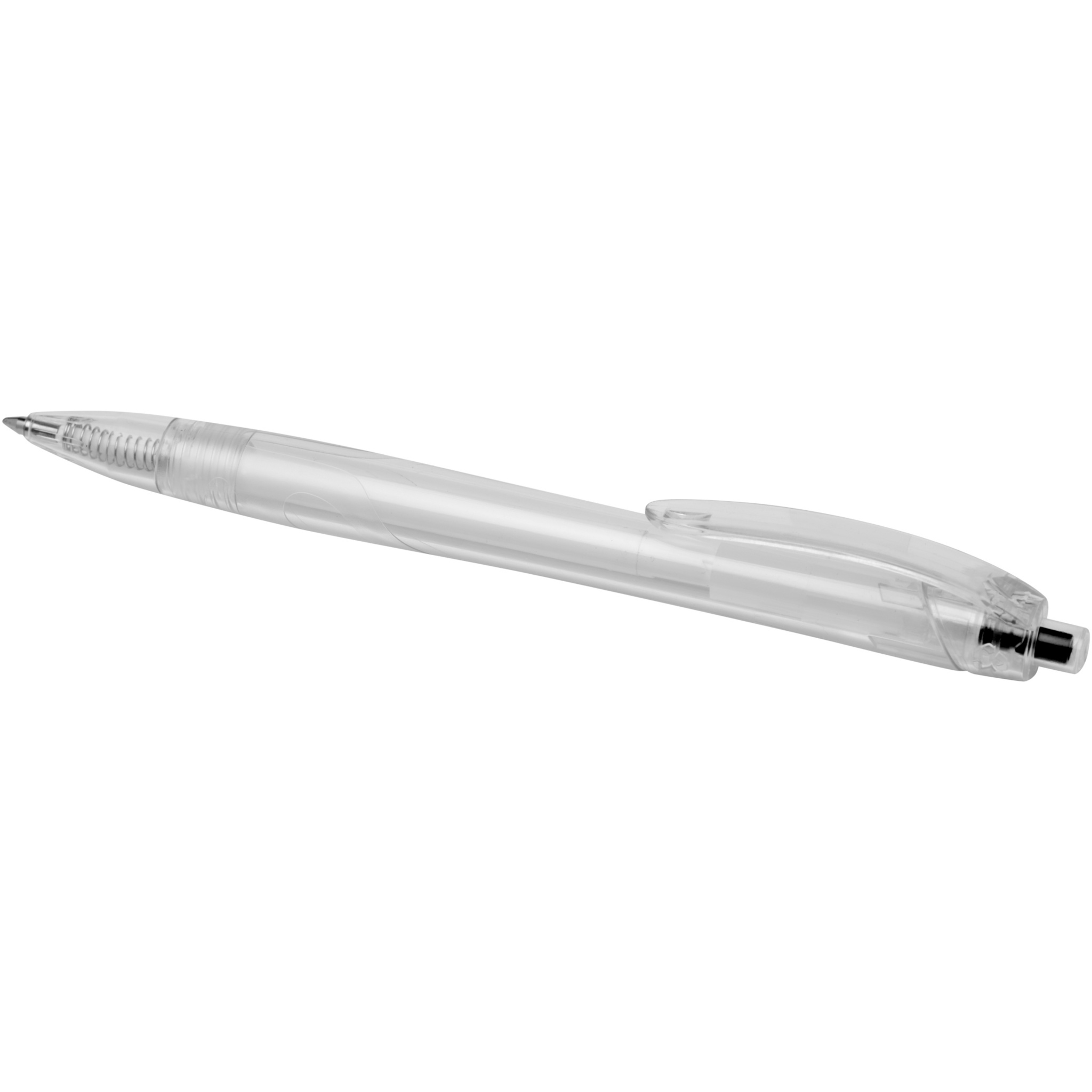 Click action kulspetspenna gjord av återvunnen PET-plast, vilket bidrar till att minska användningen av ny plast. Kulspetspennan levereras med en transparent pennkropp och färgad tryckknapp. Den är förladdad med en blå påfyllning och kan kombineras med 107763 Honua RPET notebook.