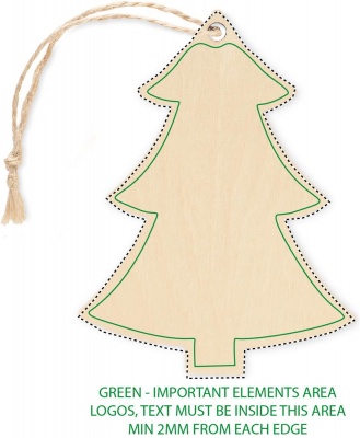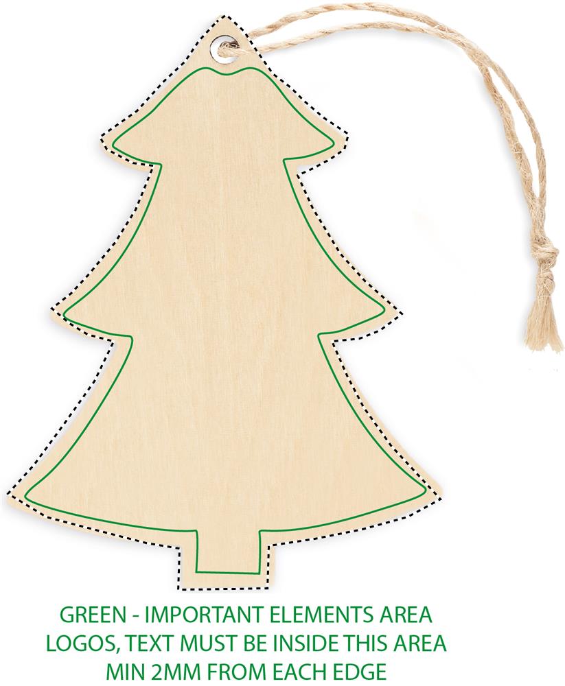Julprydnad i plywood med jutekord för sublimering i trädform. Vitt tryck är inte möjligt.