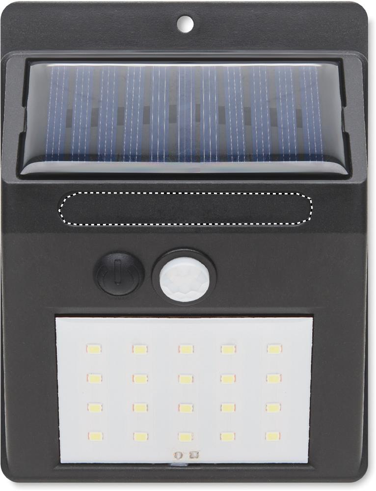 20 LED solcellsljus i PP med rörelse- och nattsensorer. PIR (passiv infraröd sensor) rörelsesensor. CDS nattsensor. Skyddsklassning: IP 44. Batterikapacitet: 800 mAh.
