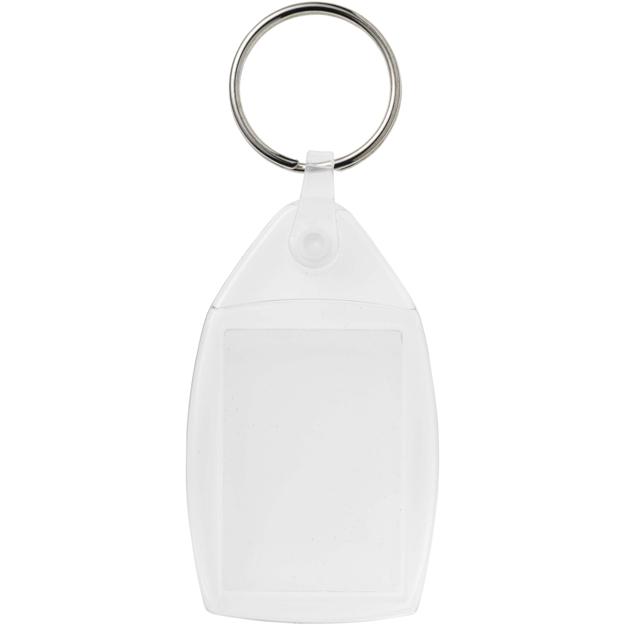 Lita nyckelring P6 med plastklämma. Genomskinlig nyckelring P6 med delad metallring och dynamisk plastklämma. Plastklämman har en platt profil som är idealisk för utskick. Tryckinläggets dimensioner: 3,5 cm x 2,4 cm. GPPS-plast.