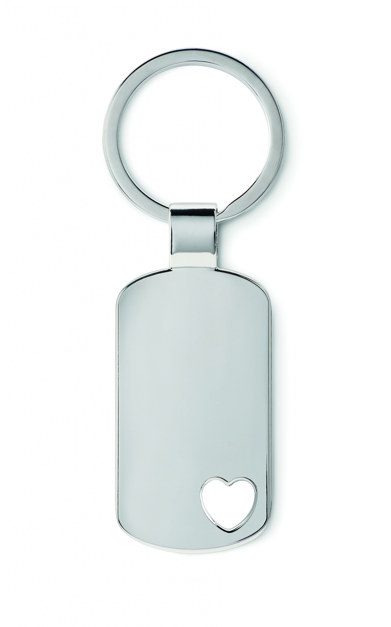 Metall nyckelring med ett litet utstansat hjärta längst ner. Individuellt packade i ask.