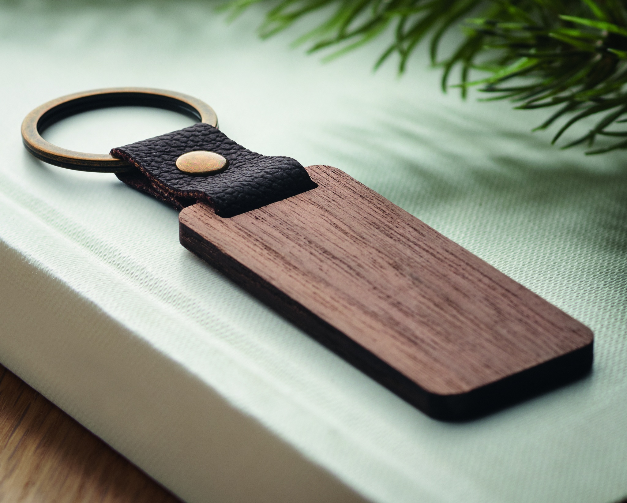 Logotrade profilprodukter bild: Nyckelring i valnöt och PU Kokkola