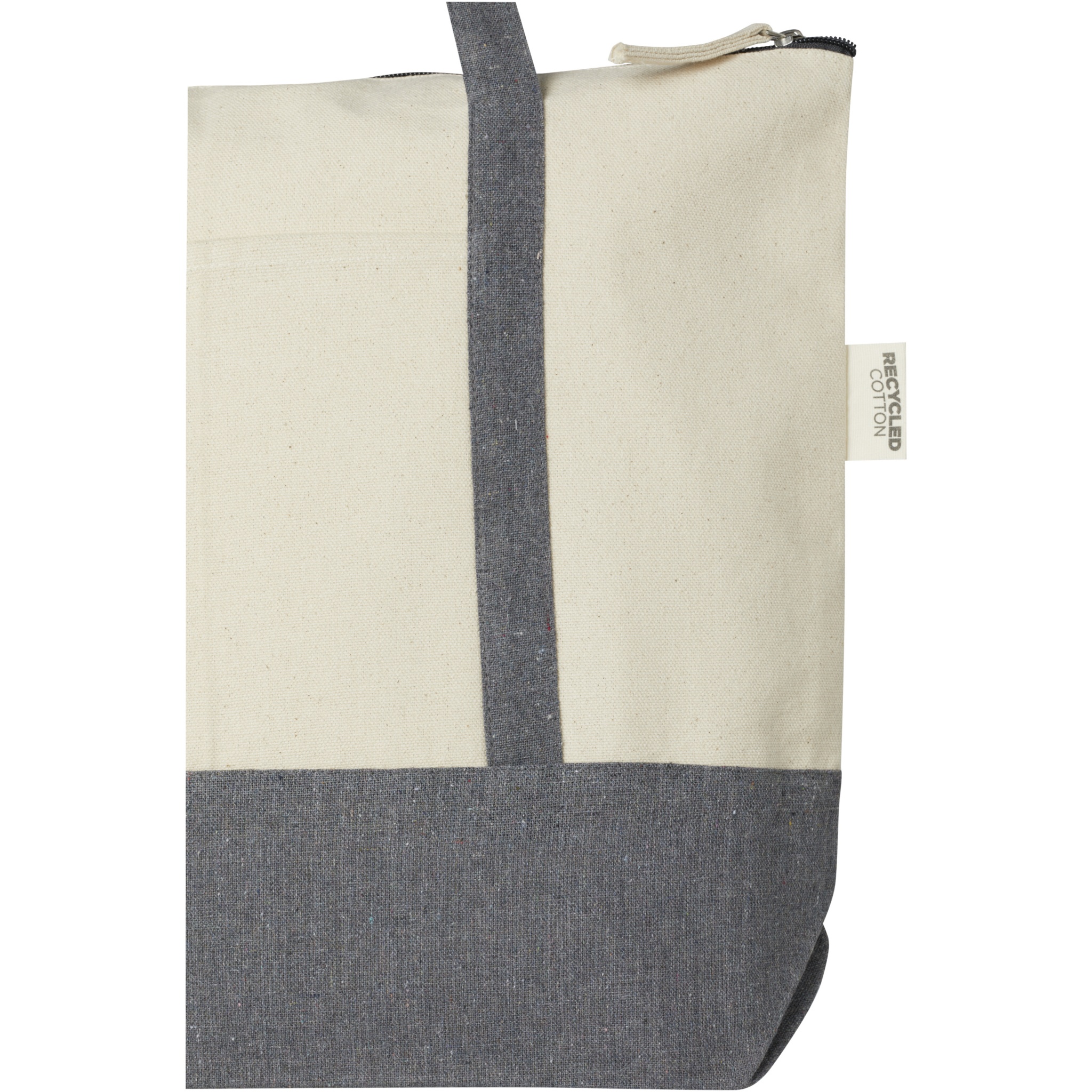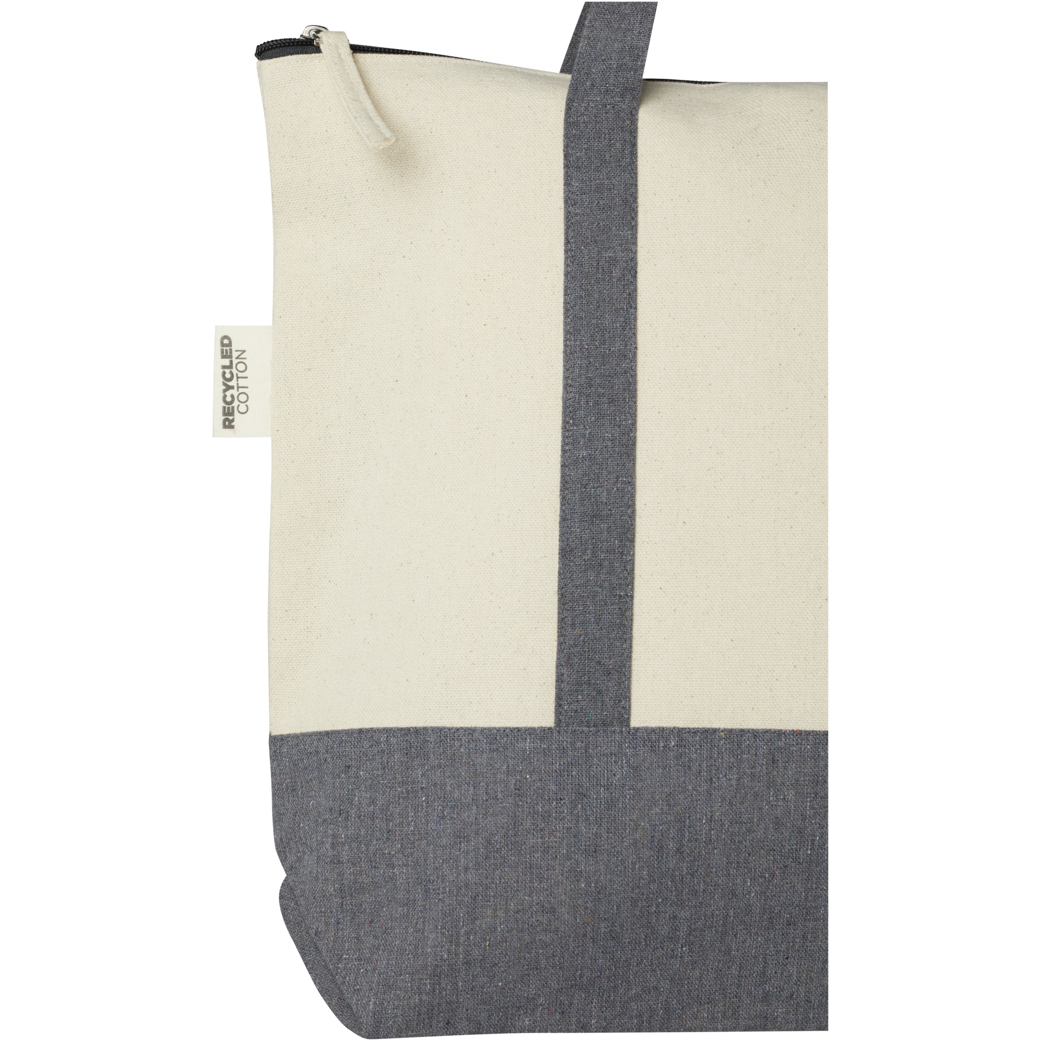 Repose tygväska av 320 g/m² återvunnen bomull med dragkedja är tillverkad av miljövänlig, återvunnen bomull från konsumentavfall. Den har ett huvudfack med blixtlås, trendiga färgblock, en sned ficka på framsidan och handtag på 27 cm. Bärkraft upp till 10 kg.